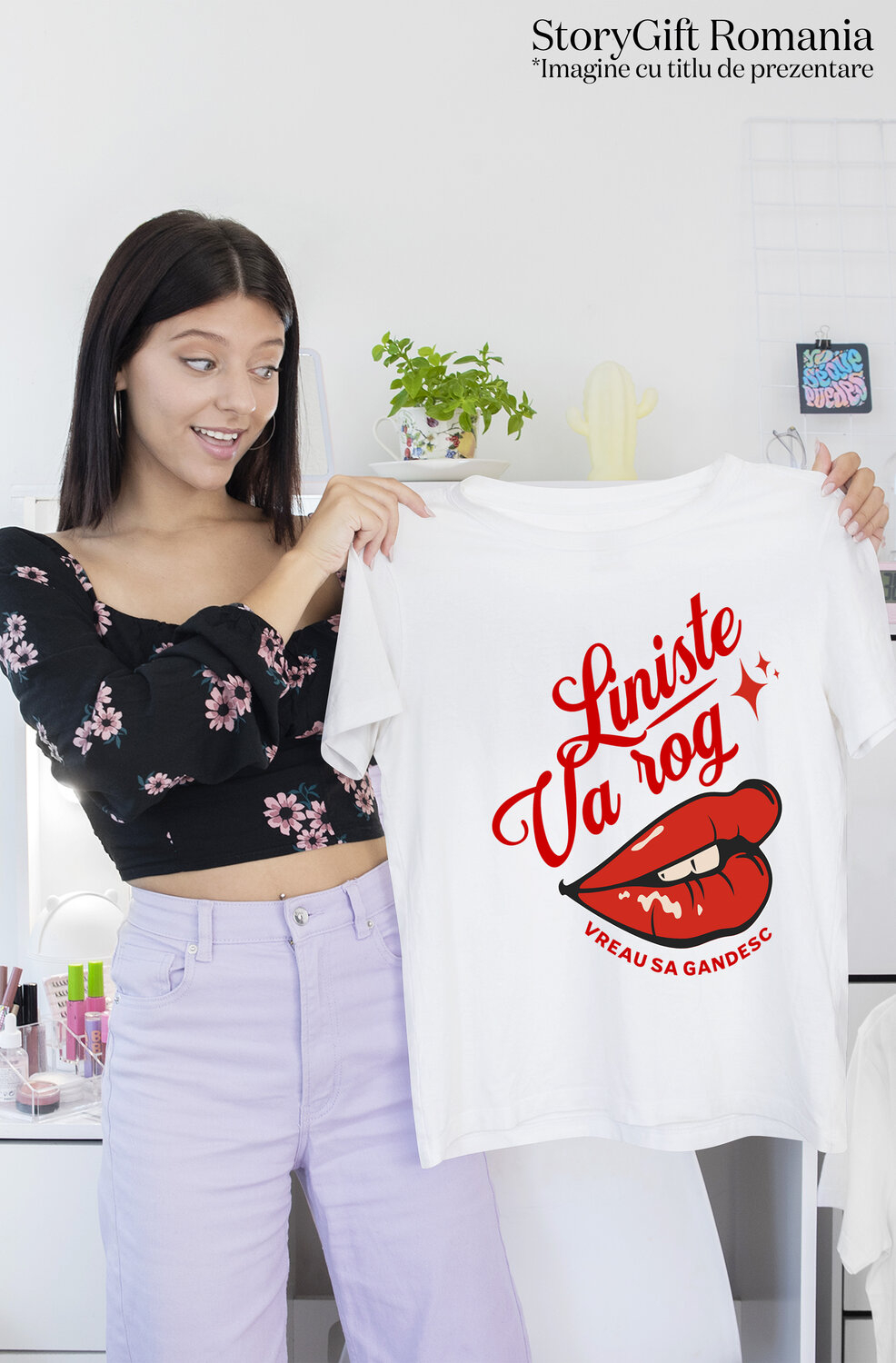 Tricou Femei cu Buze Rosii Feminine Haios Atragatoare Sexy Text In Limba Romana cu imprimeu pe Fata, 100% Bumbac, Alb, XS