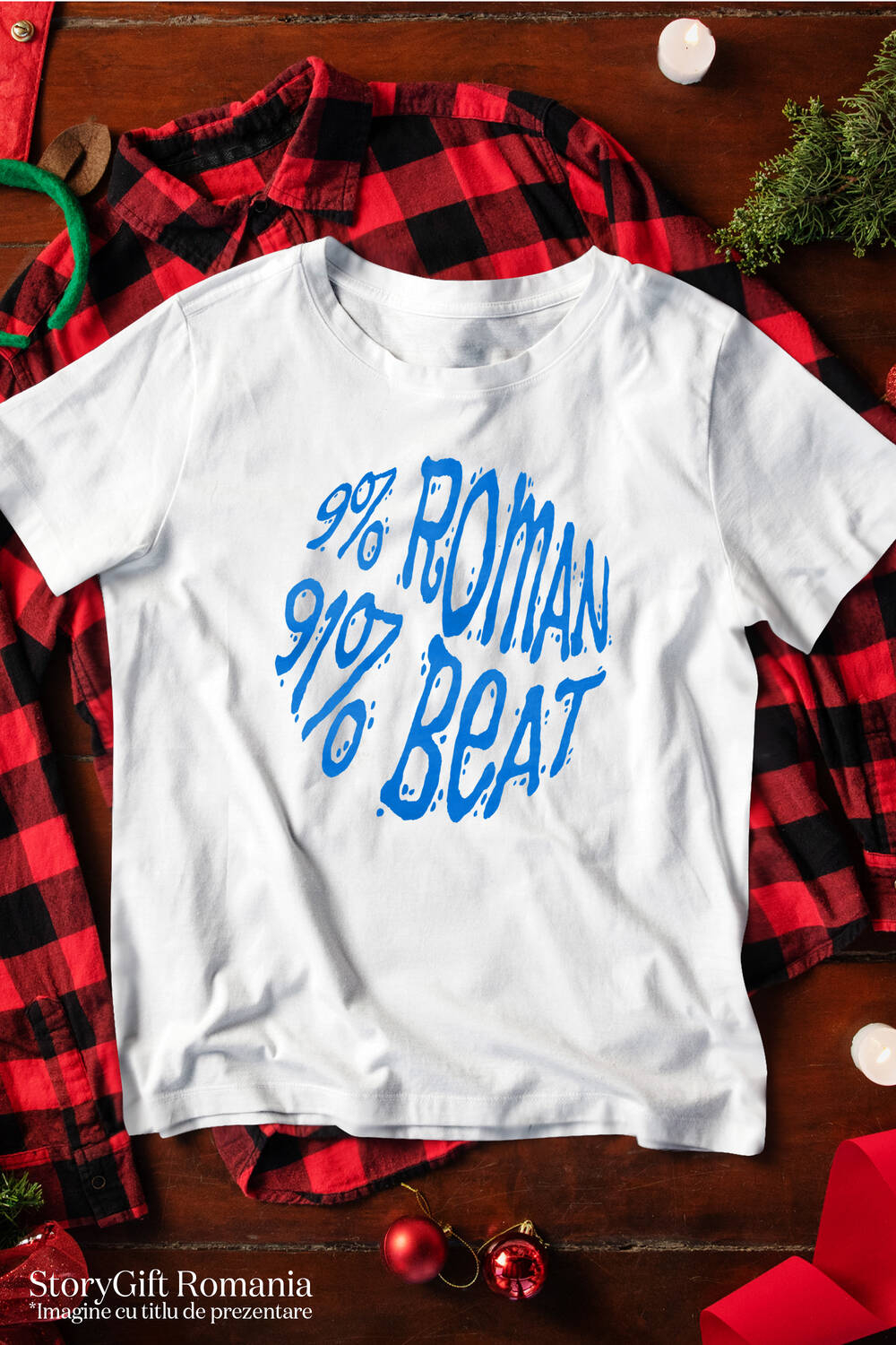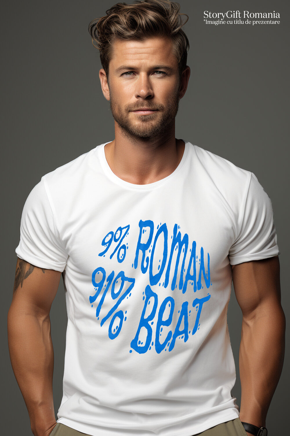 Tricou Barbati cu Iluzie Optica Sfera Procentaj Roman Beat Haios Gluma Alcool Distractie Petrecere cu imprimeu pe Fata, 100% Bumbac, Alb, L