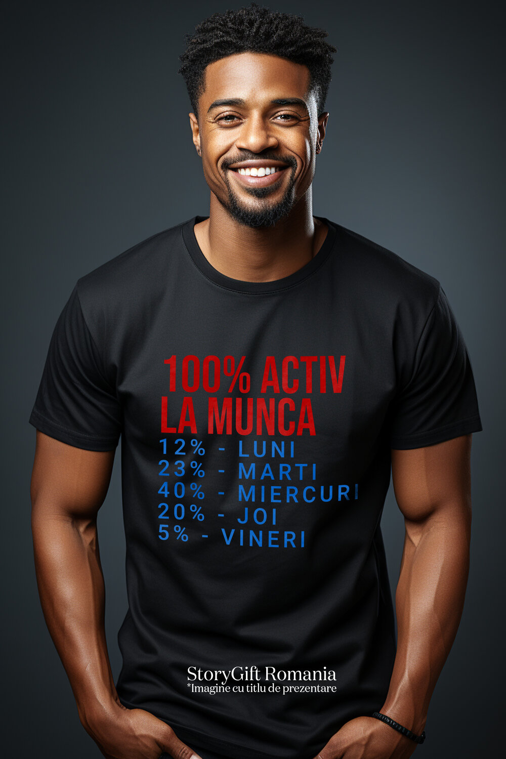 Tricou Barbati cu Iubitorii De Glume Procentaj activitate Munca Pe Zile Haios Sarcasm Productivitate cu imprimeu pe Fata, 100% Bumbac, Negru, L