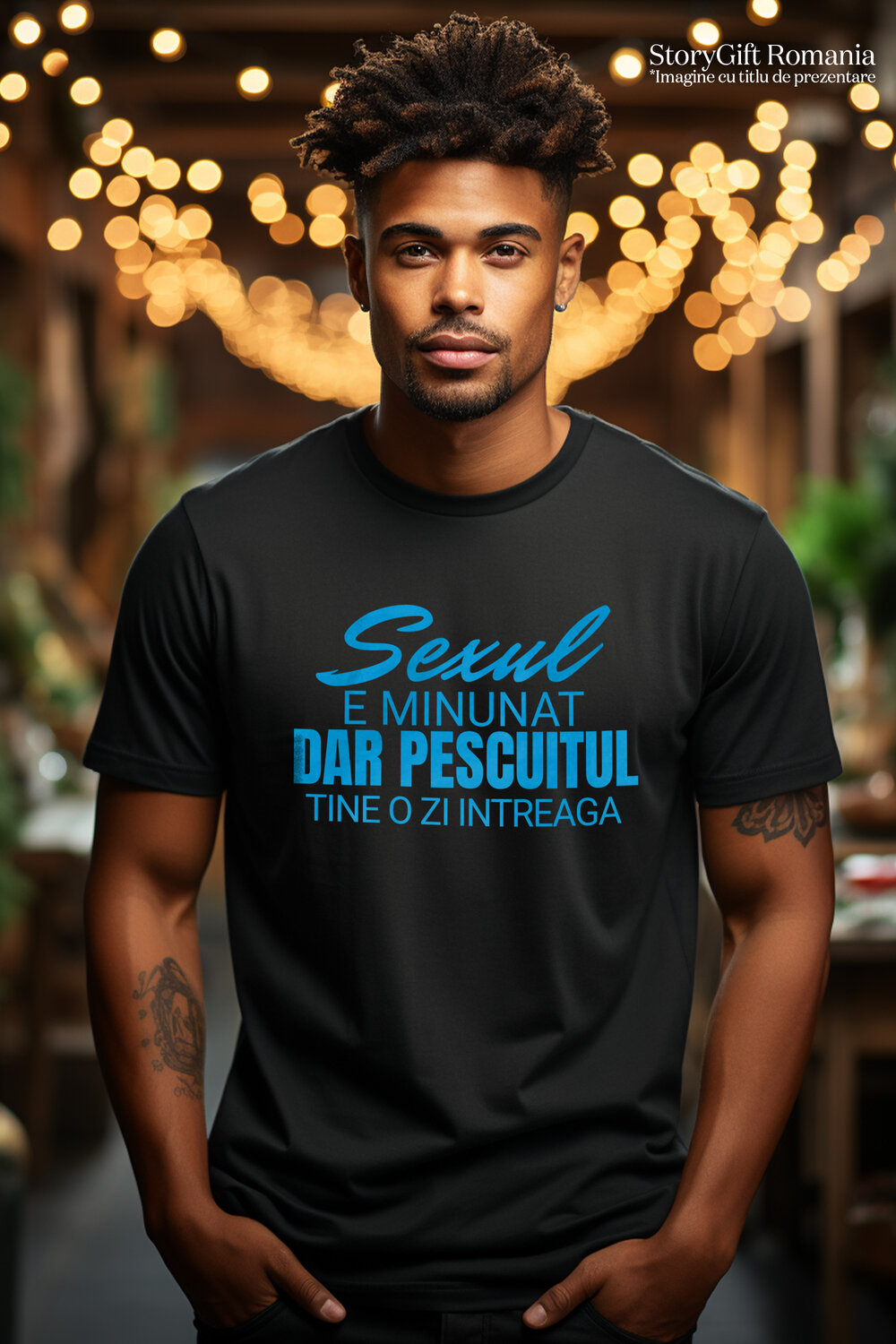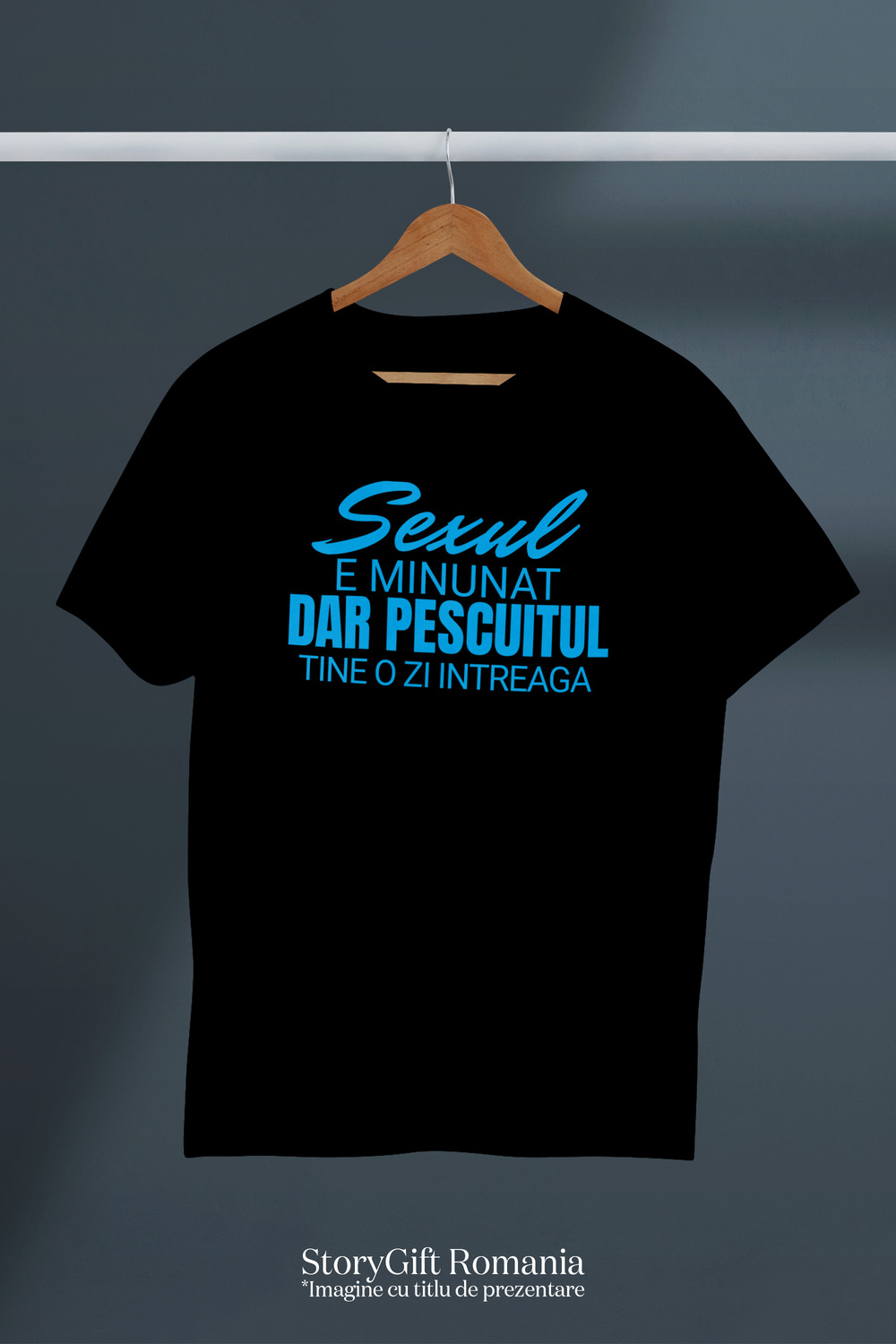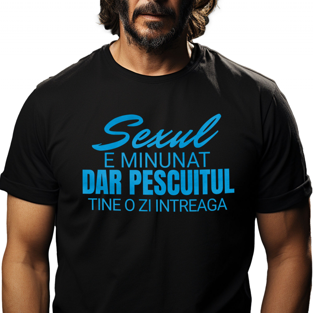 Tricou Barbati cu Iubitorii De Pescuit Mesaj Haios in Limba Romana Sex, Iubire, haios Relatie Cuplu cu imprimeu pe Fata, 100% Bumbac, Negru, L
