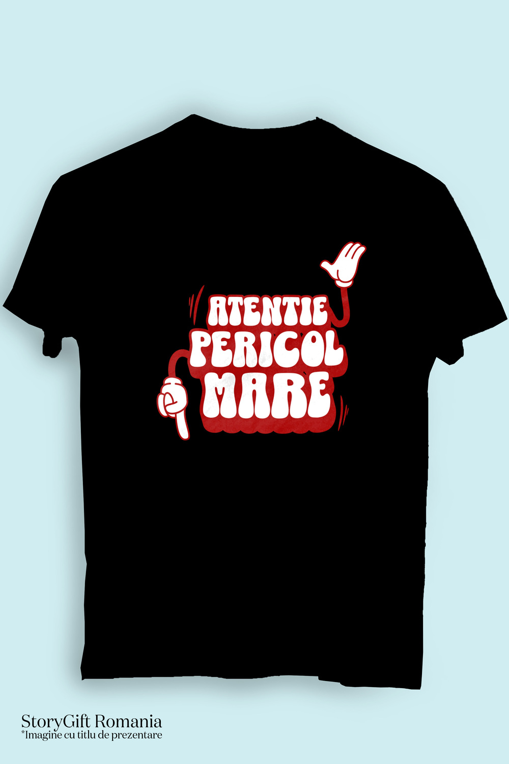Tricou Barbati cu Maini Stil Mickey Mouse Deget Aratat In Jos, Sezual, Iubire Sarcastic cu imprimeu pe Fata, 100% Bumbac, Negru, L