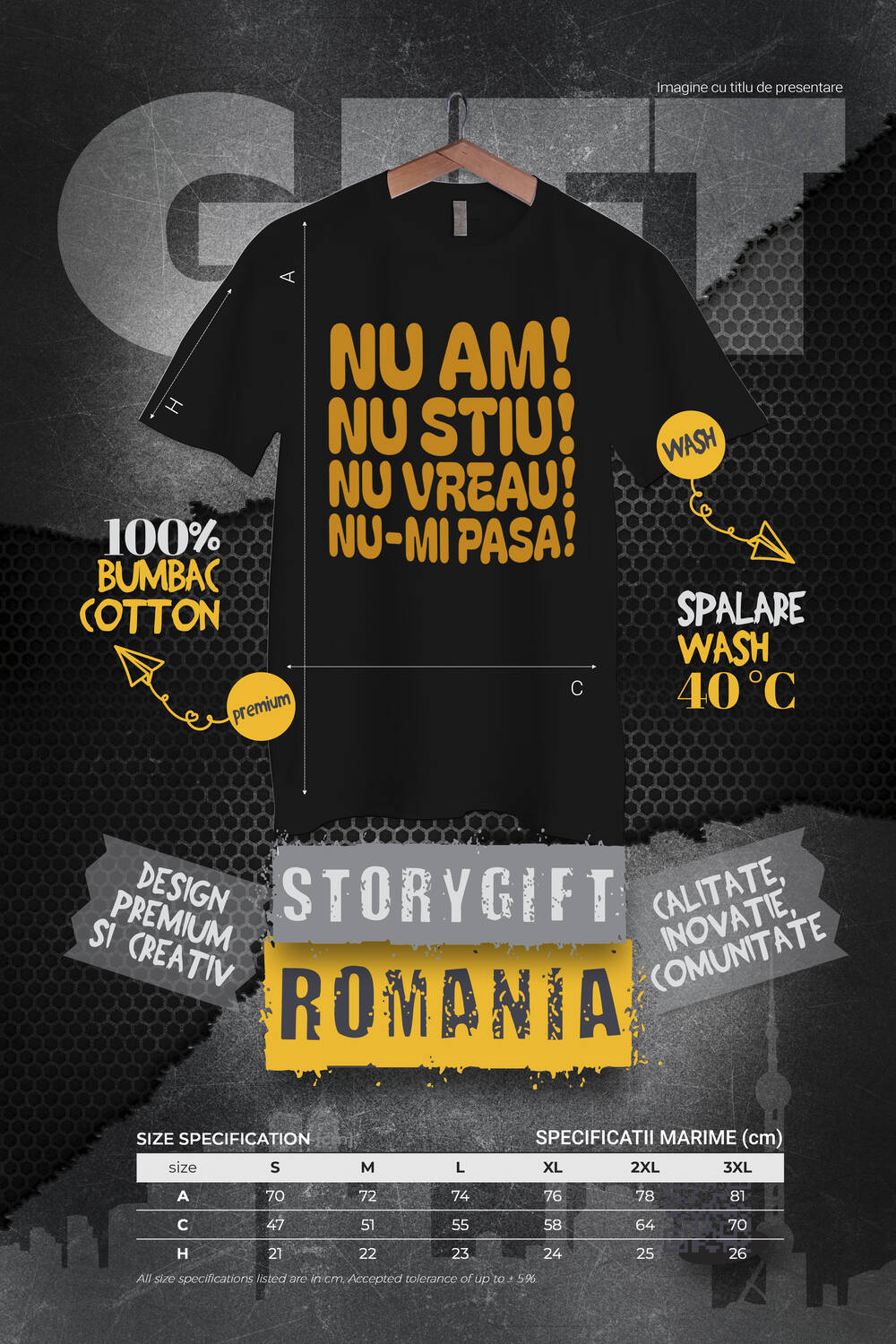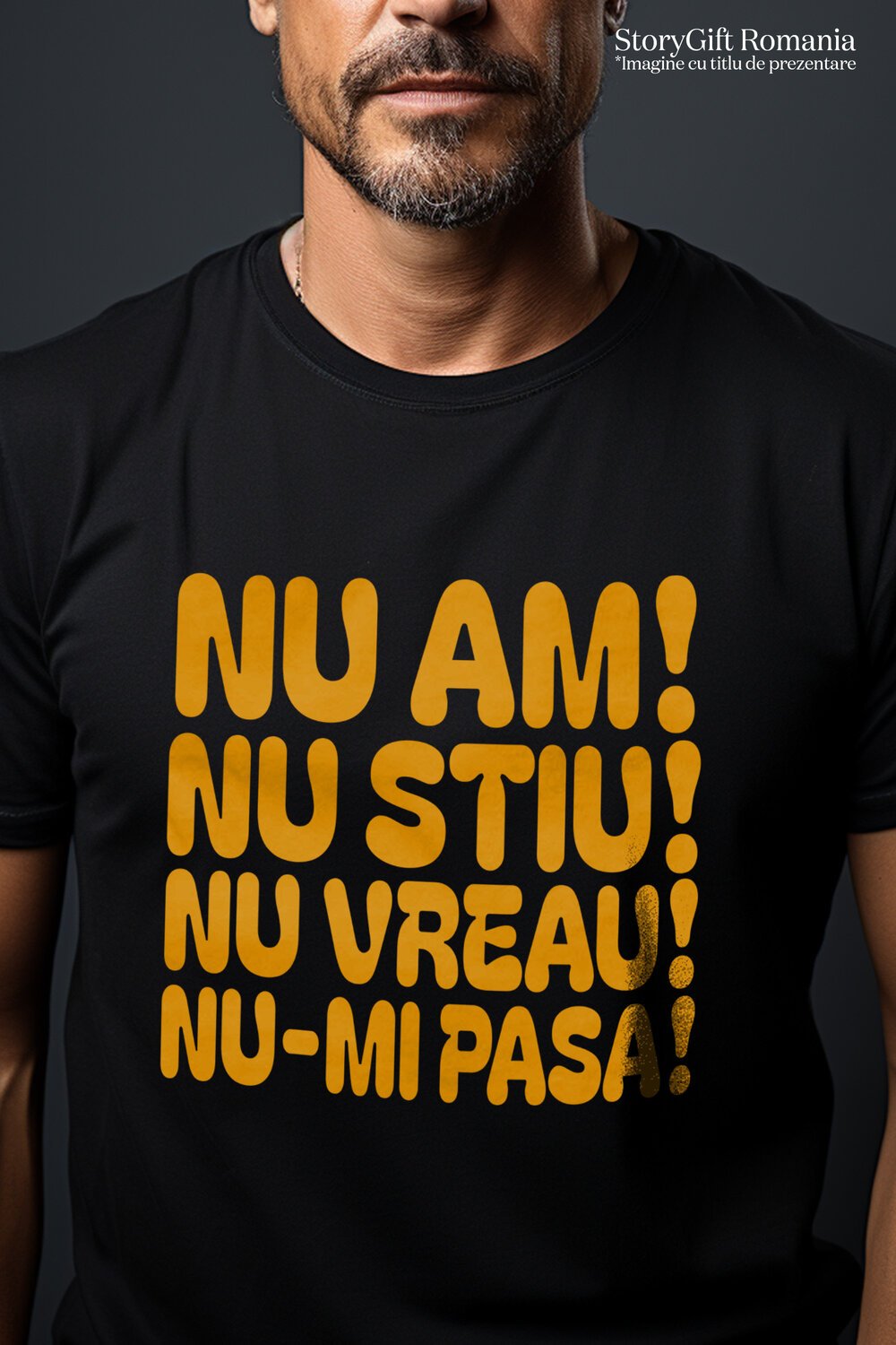 Tricou Barbati cu Mesaj Negativ in Limba Romana Adolescent, Nepasare, Ironie, Sarcasm cu imprimeu pe Fata, 100% Bumbac, Negru, L