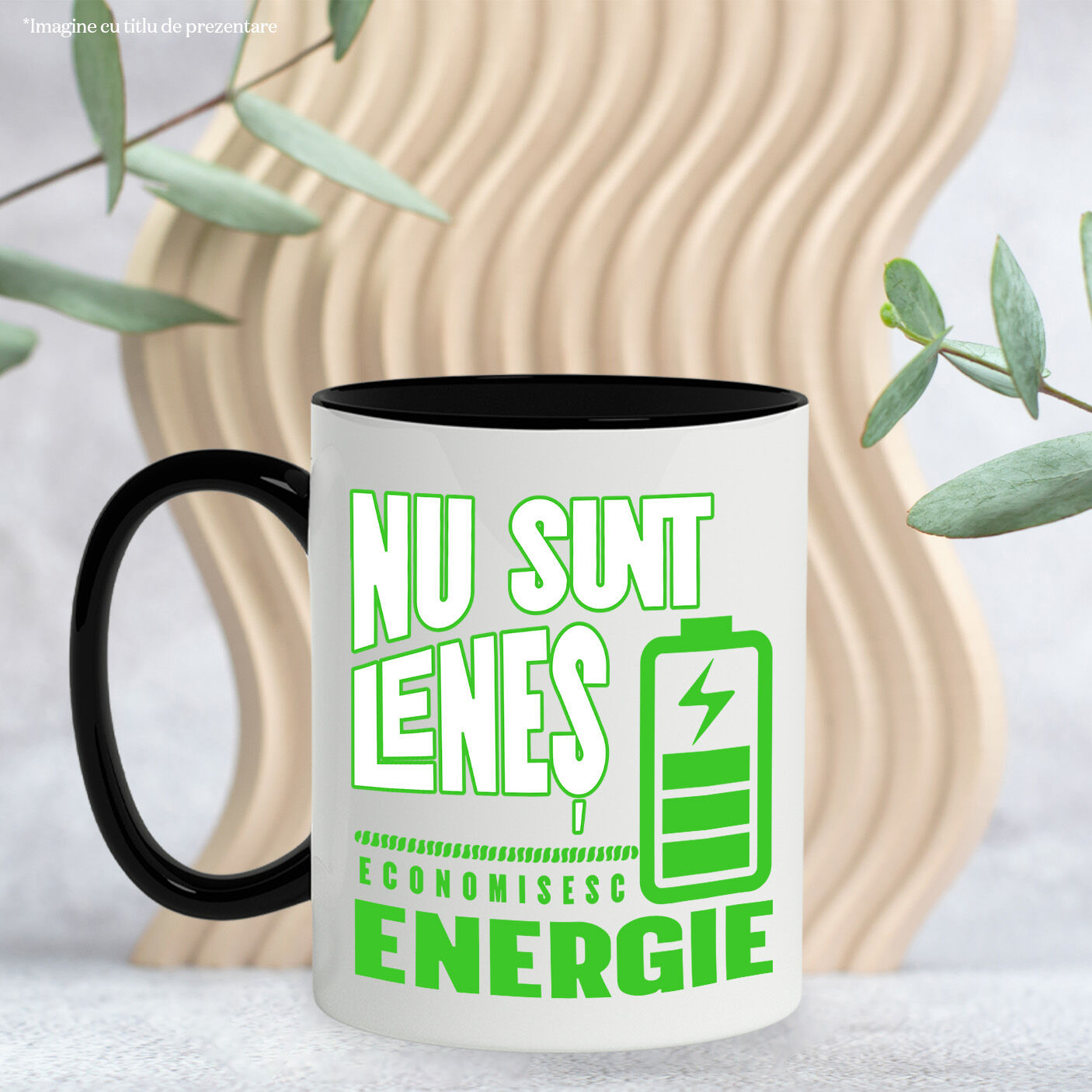 Cana Personalizata cu Baterie Reincarcare Energie Oboseala Extenuare Curent cafea, Ceramica, 330ML, cu Maner Negru