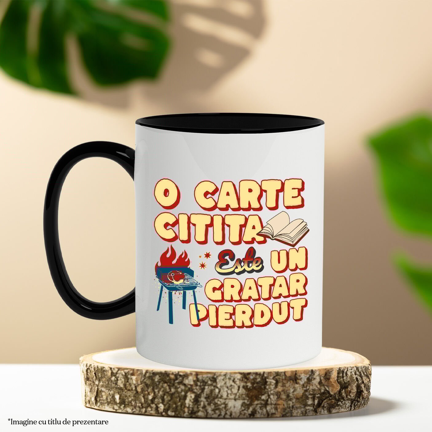 Cana Personalizata cu Carte Deschisa Educatie Carne pe Gratar Pierdut Haios Distractoie , Ceramica, 330ML, cu Maner Negru