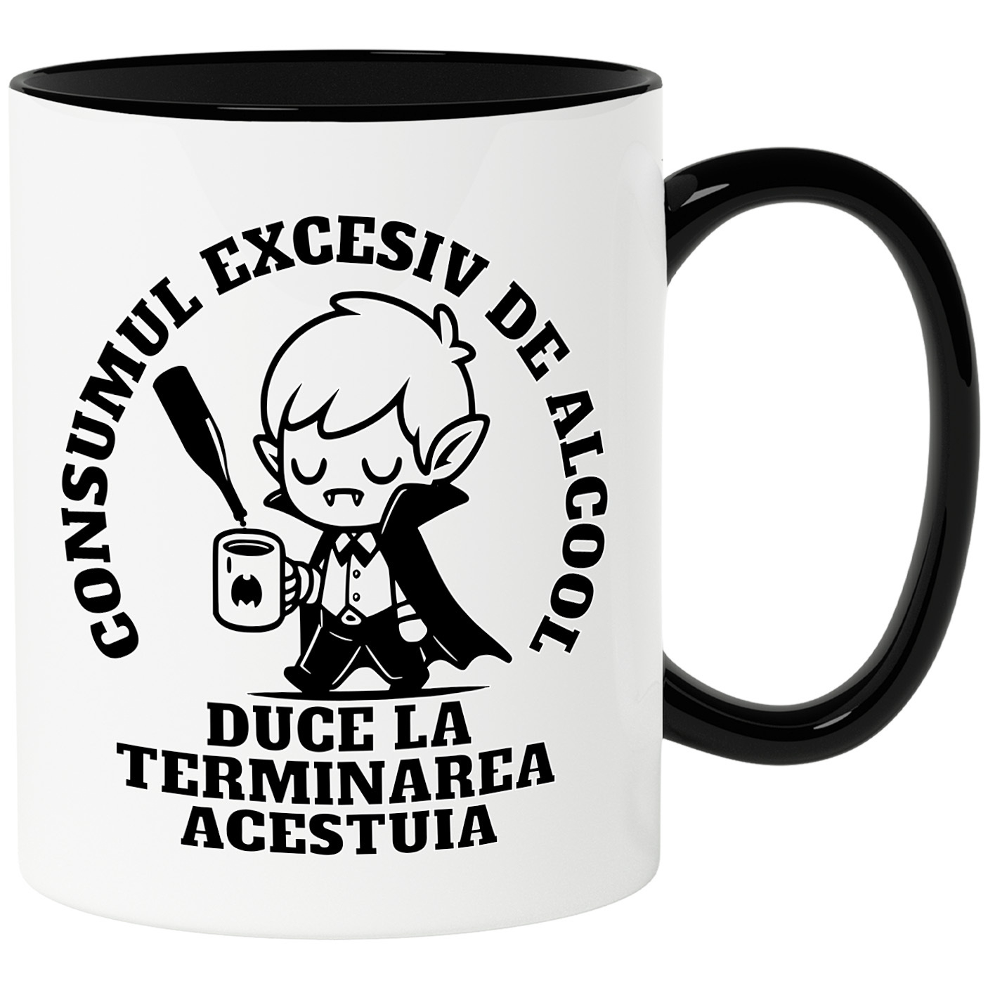 Cana Personalizata cu Vampir Haios Cu Coli Si Pelerina, Cana Personalizata De Cafea Alcool, Funny Distractie, Ceramica, 330ML, cu Maner Negru