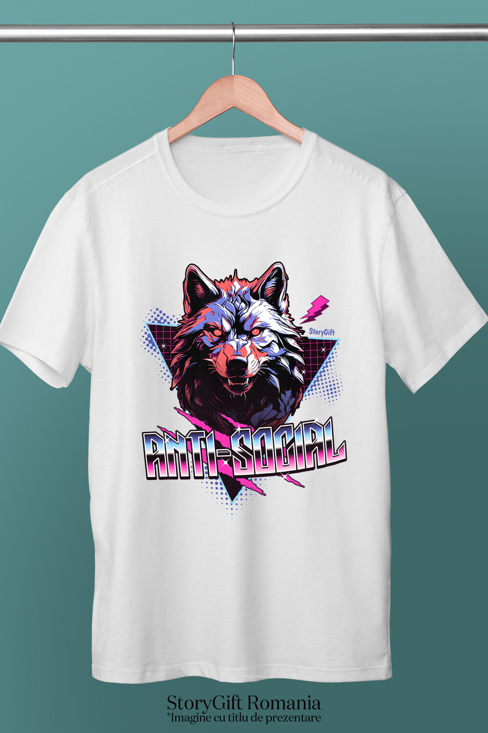 Tricou Barbati cu Portret Animal Lup Furios Cu Colti Si Ochii Rosii Filme Horror cu imprimeu pe Fata, 100% Bumbac, Alb, L
