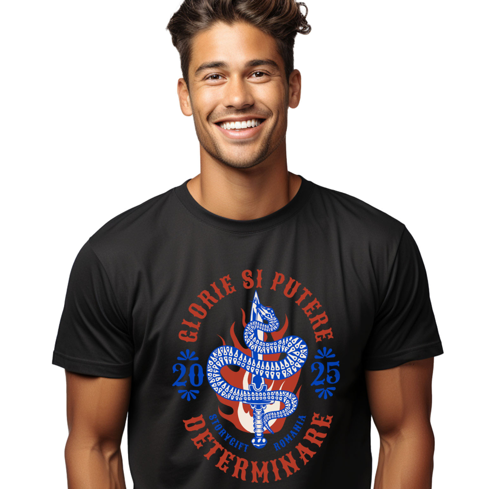 Tricou Barbati cu Sarpe Periculos Cu Sabie Motivational Glorie Putere Determinare cu imprimeu pe Fata, 100% Bumbac, Negru, L