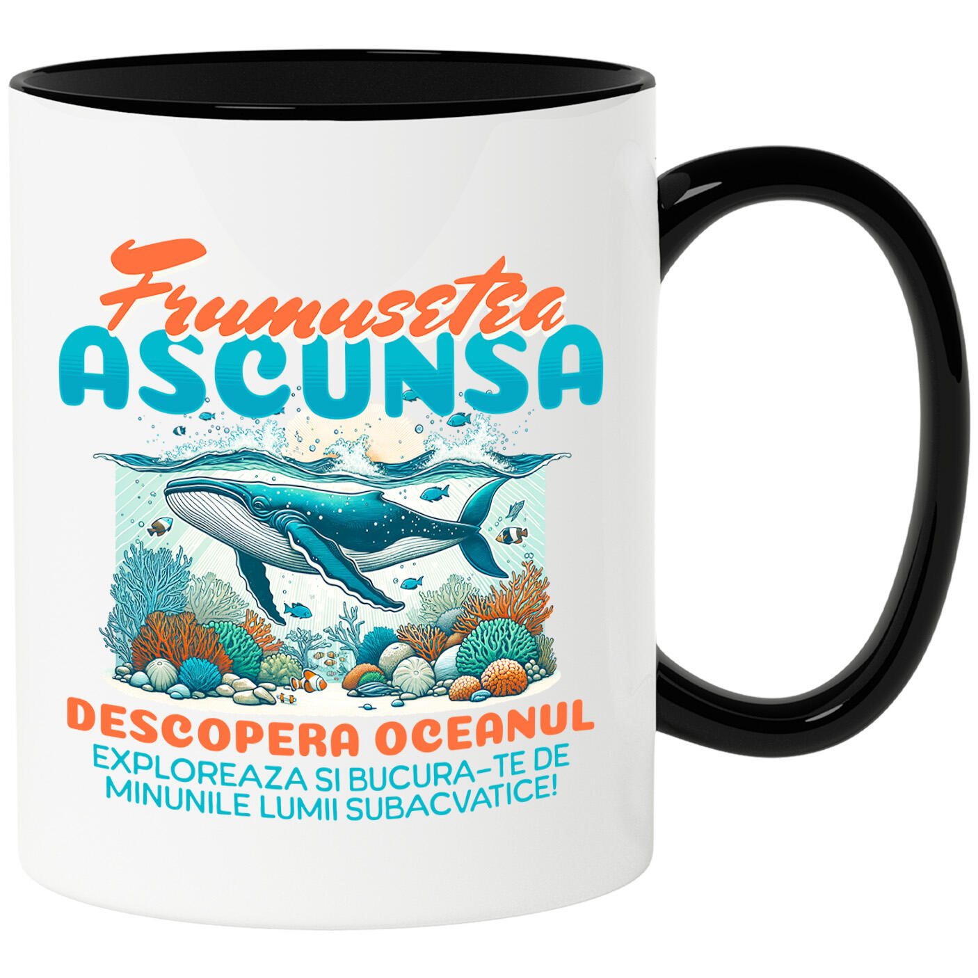 Cana Personalizata cu Animal Balena Sub Apa Marii Acvatic, Hobby, Peste Ocean, Ceramica, 330ML, cu Maner Negru