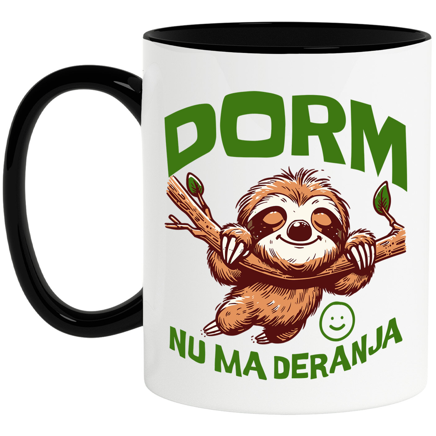 Cana Personalizata cu Animal Lenes Zambet Larg Similey face Relaxare, Somn, Vacanta, Ceramica, 330ML, cu Maner Negru