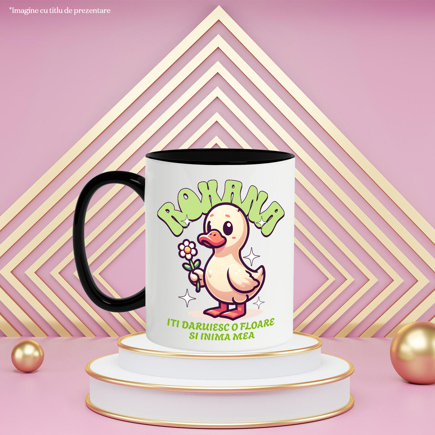 Cana Personalizata cu Rata Romantica Cu Floare Margareta Valentine's Day Dragoste, Ceramica, 330ML, cu Maner Negru