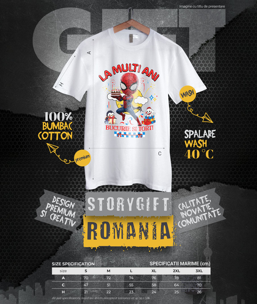 Tricou Barbati cu Cadou Tematic Spiderman pentru Micii Eroi 100% Bumbac, Alb, L