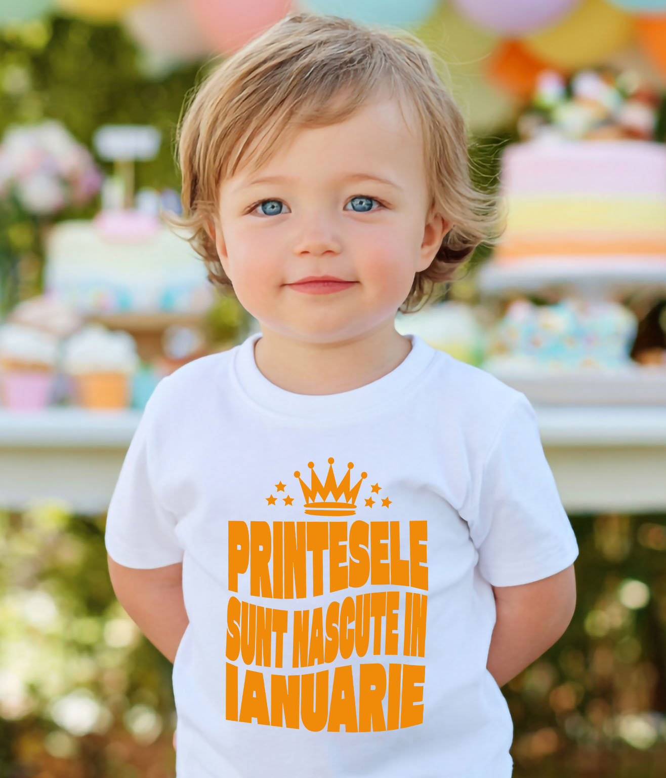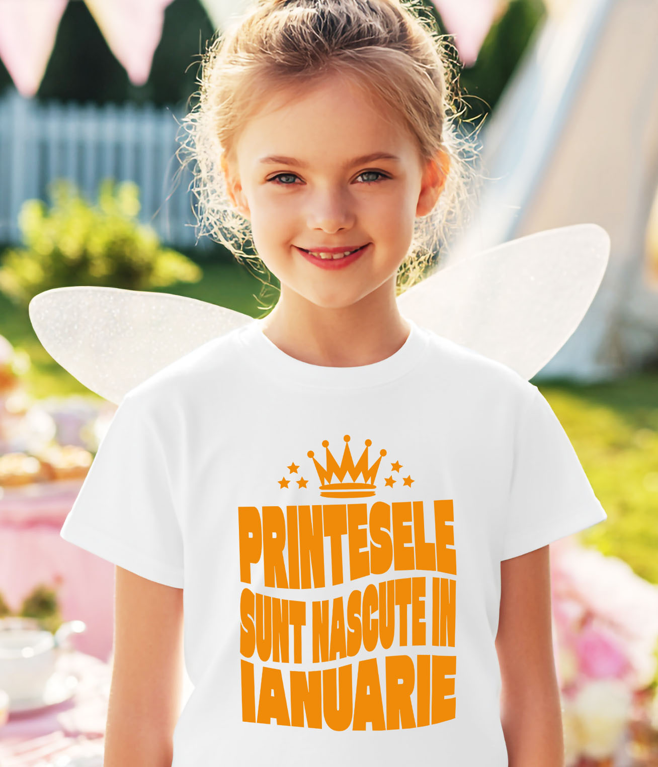 Tricou Copii cu Coroan Regala Printesa Stele Stralucitoare Aniversare Nastere Sarbatoare Petrecere cu imprimeu pe Fata, 100% Bumbac, Alb, 8 Ani