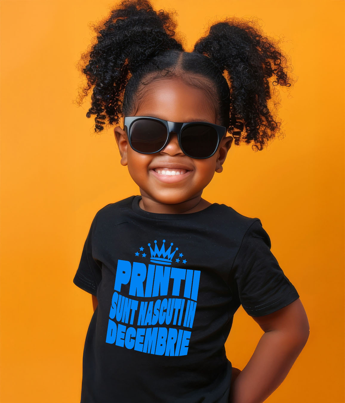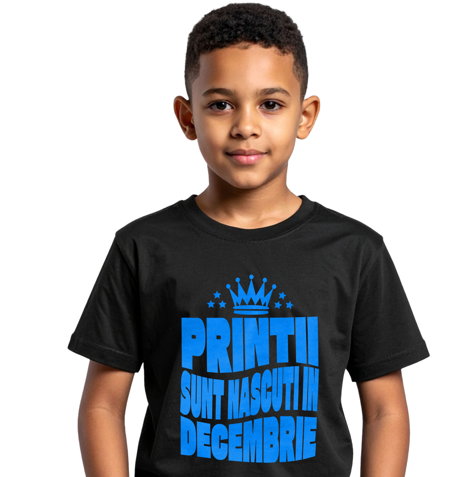 Tricou Copii cu Coroana Regala Zi Aniversara Petrecere Luna Nastere cu imprimeu pe Fata, 100% Bumbac, Negru, 10 Ani