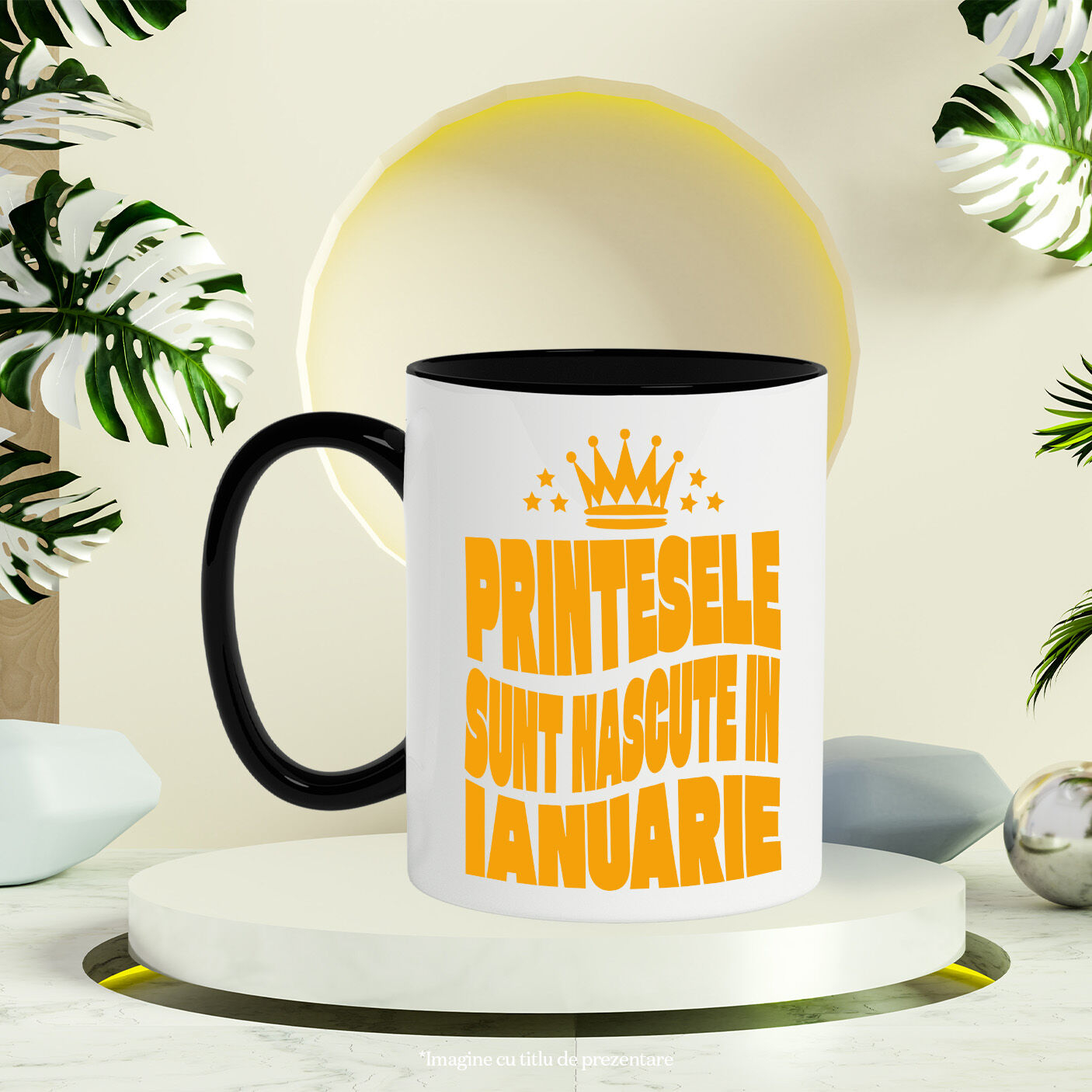 Cana Personalizata cu Coroan Regala Printesa Stele Stralucitoare Aniversare Nastere Sarbatoare Petrecere, Ceramica, 330ML, cu Maner Negru