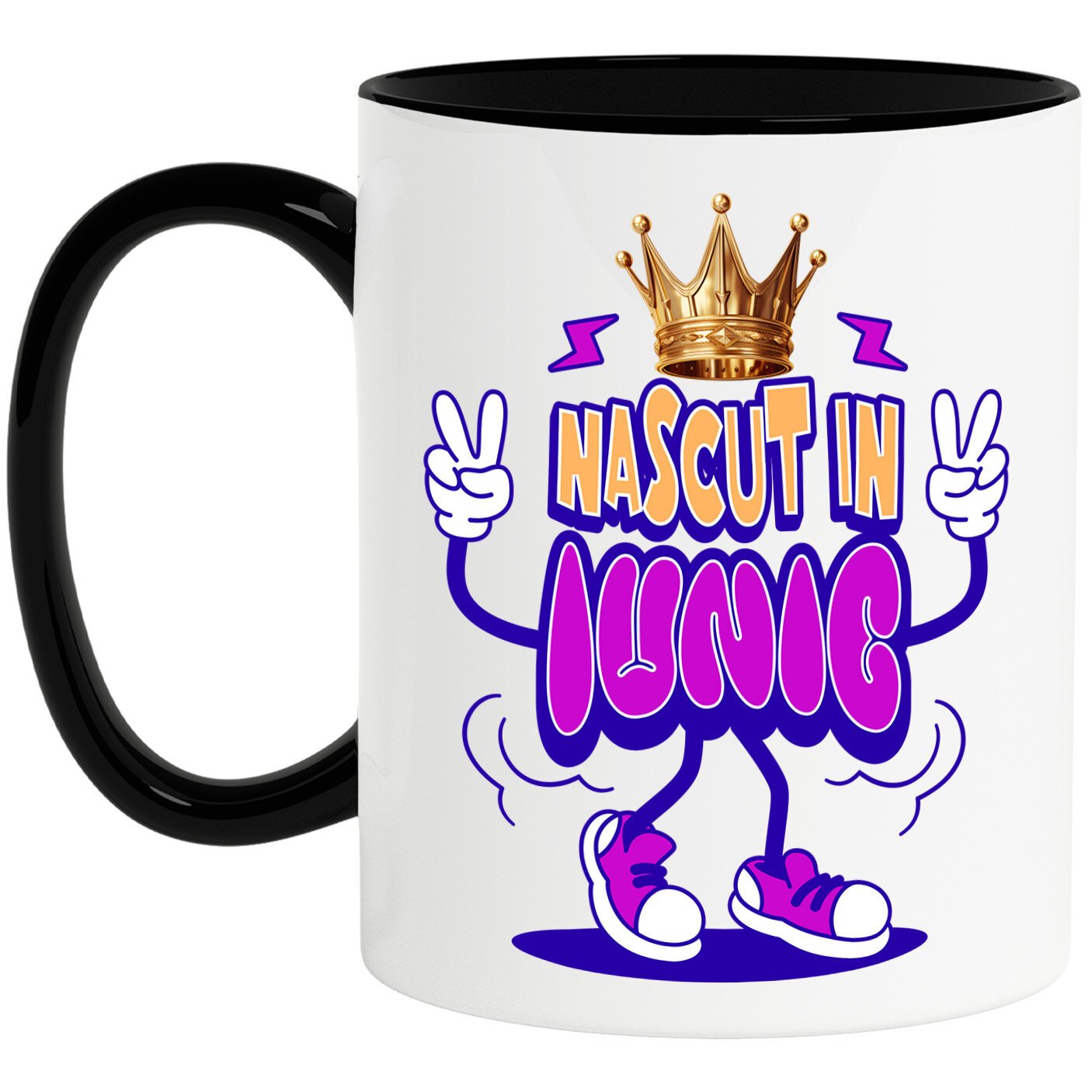 Cana Personalizata cu Coroana Regala Copii Adidasi Roz Iunie Zi Aniversara Petrecere, Ceramica, 330ML, cu Maner Negru