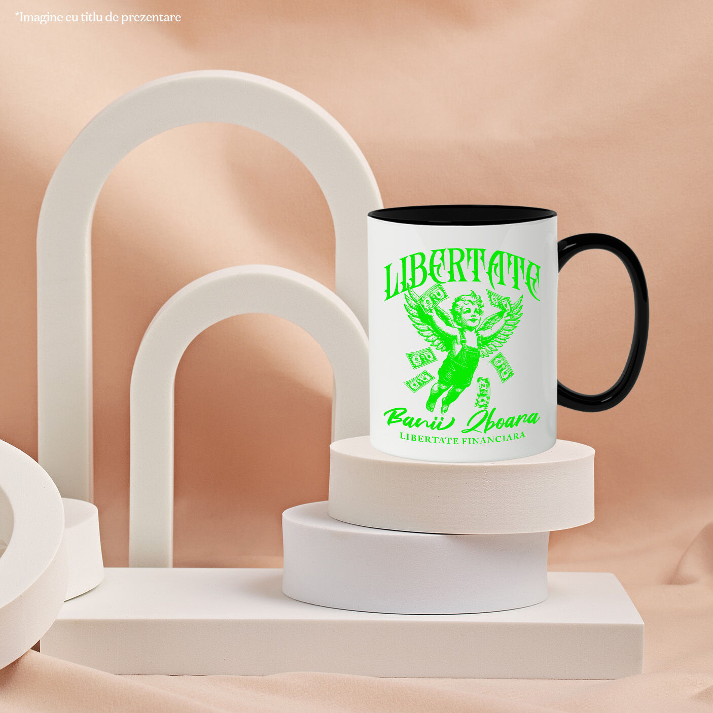 Cana Personalizata cu Inger cu aripi Copil Zburator bancnote bani, Avere, Milionar, Financiar Investiti, Ceramica, 330ML, cu Maner Negru