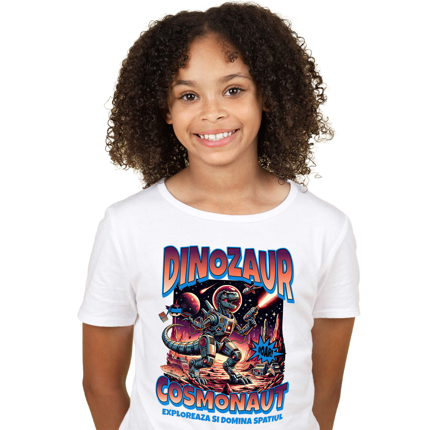 Tricou Copii cu Dragon In Costum De Astronaut Spatial Razboi pe Marte, Copii, Lume Digitala, Univers Infinit cu imprimeu pe Fata, 100% Bumbac, Alb, 8 Ani