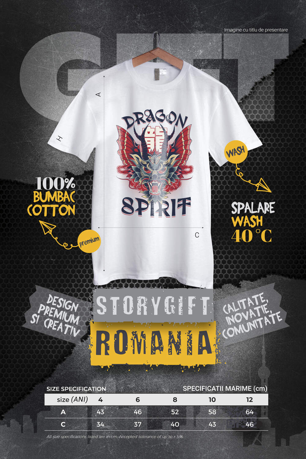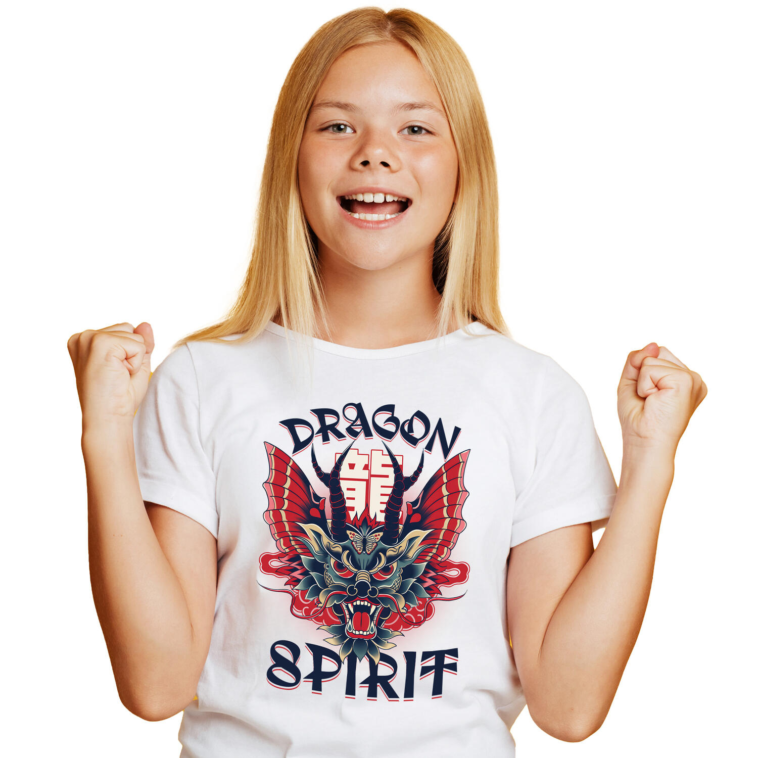 Tricou Copii cu Portret Cultura Asiatica Dragon Cu Coarne, Aripi, Basme si Legende, Jocuri Video, cu imprimeu pe Fata, 100% Bumbac, Alb, 10 Ani