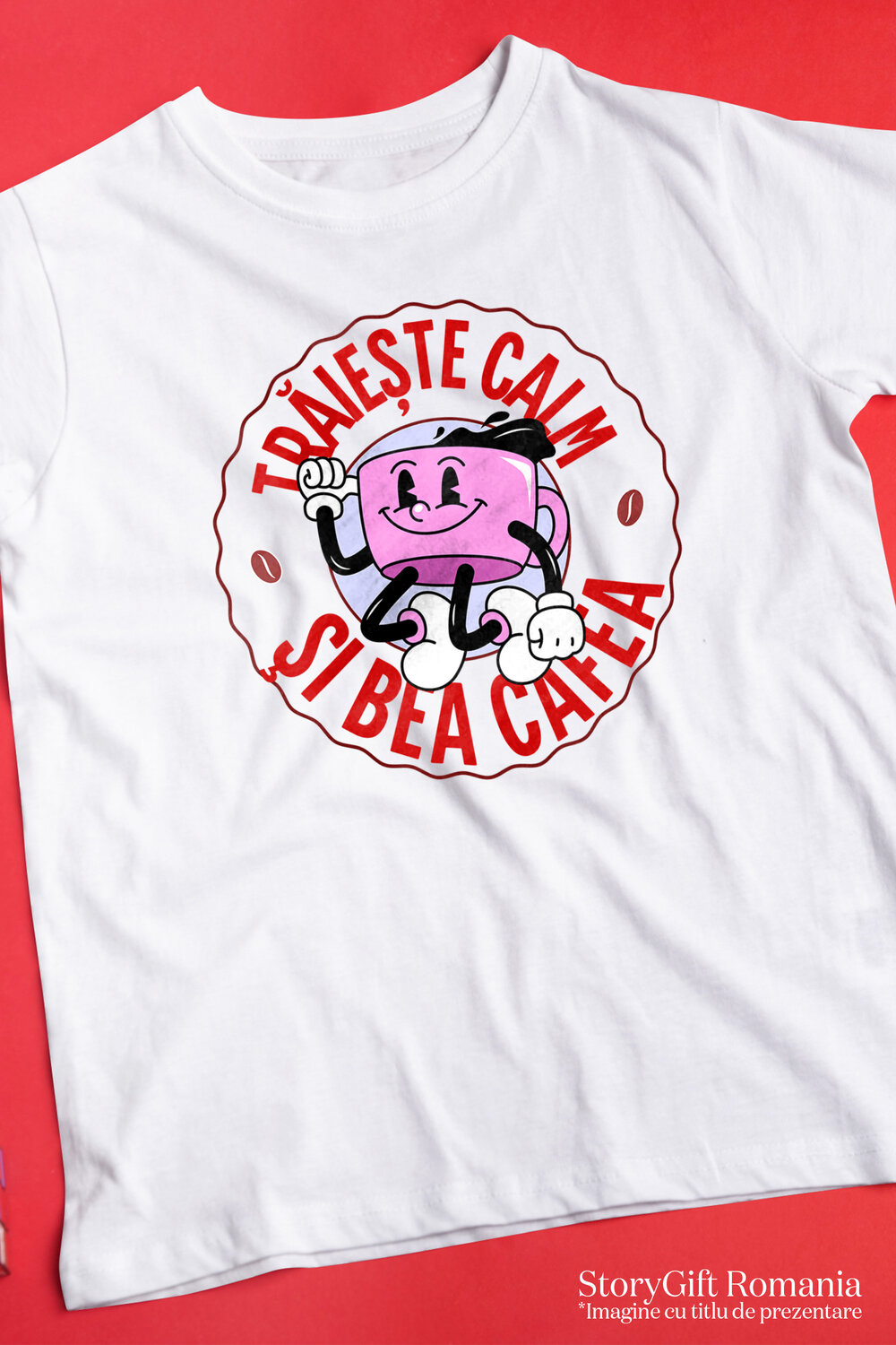 Tricou Femei cu Cana De Cafea Roz Vesela Pozitie Dans, Relaxare Energie De Dimineata cu imprimeu pe Fata, 100% Bumbac, Alb, XS