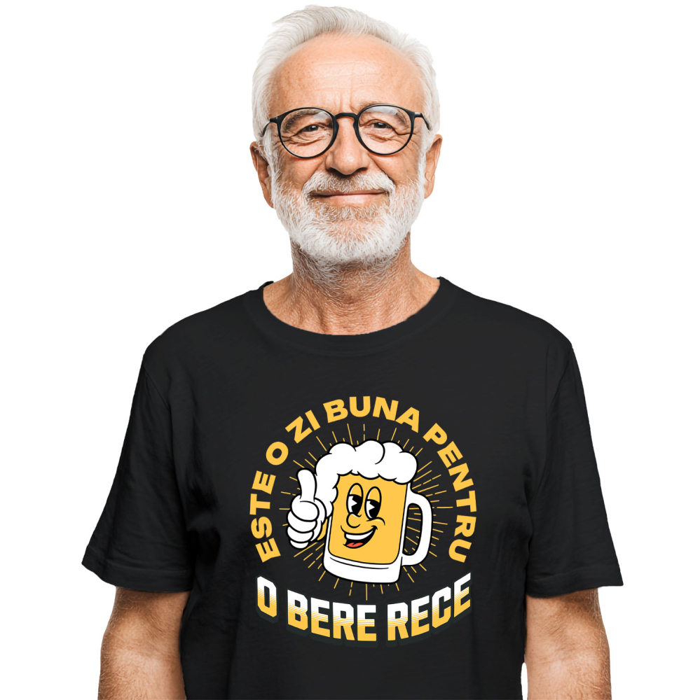 Tricou Barbati cu Halba De Bere Vesela Spuma Rece, Relaxare Intre Barbati cu imprimeu pe Fata, 100% Bumbac, Negru, L