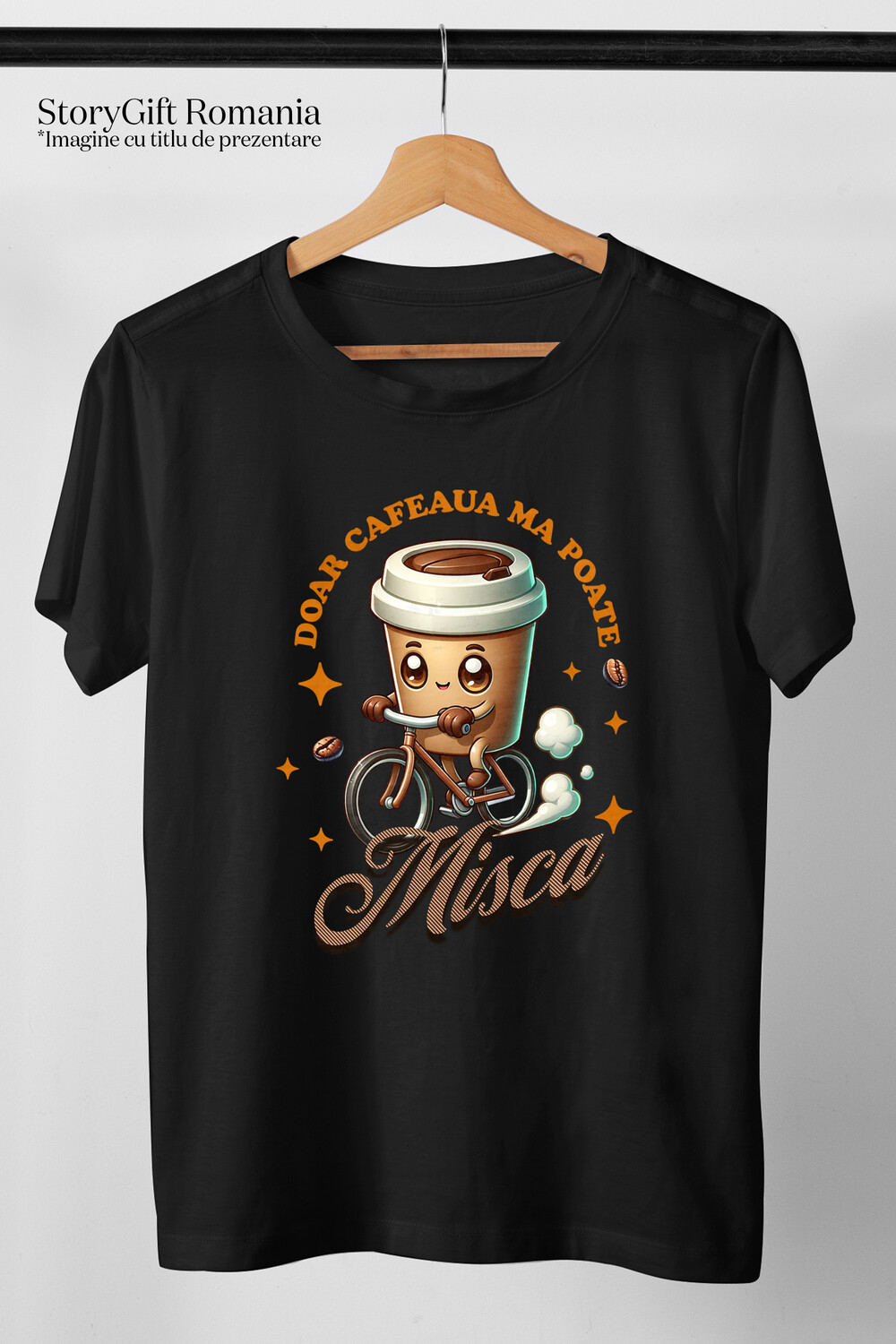 Tricou Barbati cu Pahar De Cafea Cu Capac Pe Bicicleta Sport De Dimineata, Energie cu imprimeu pe Fata, 100% Bumbac, Negru, L