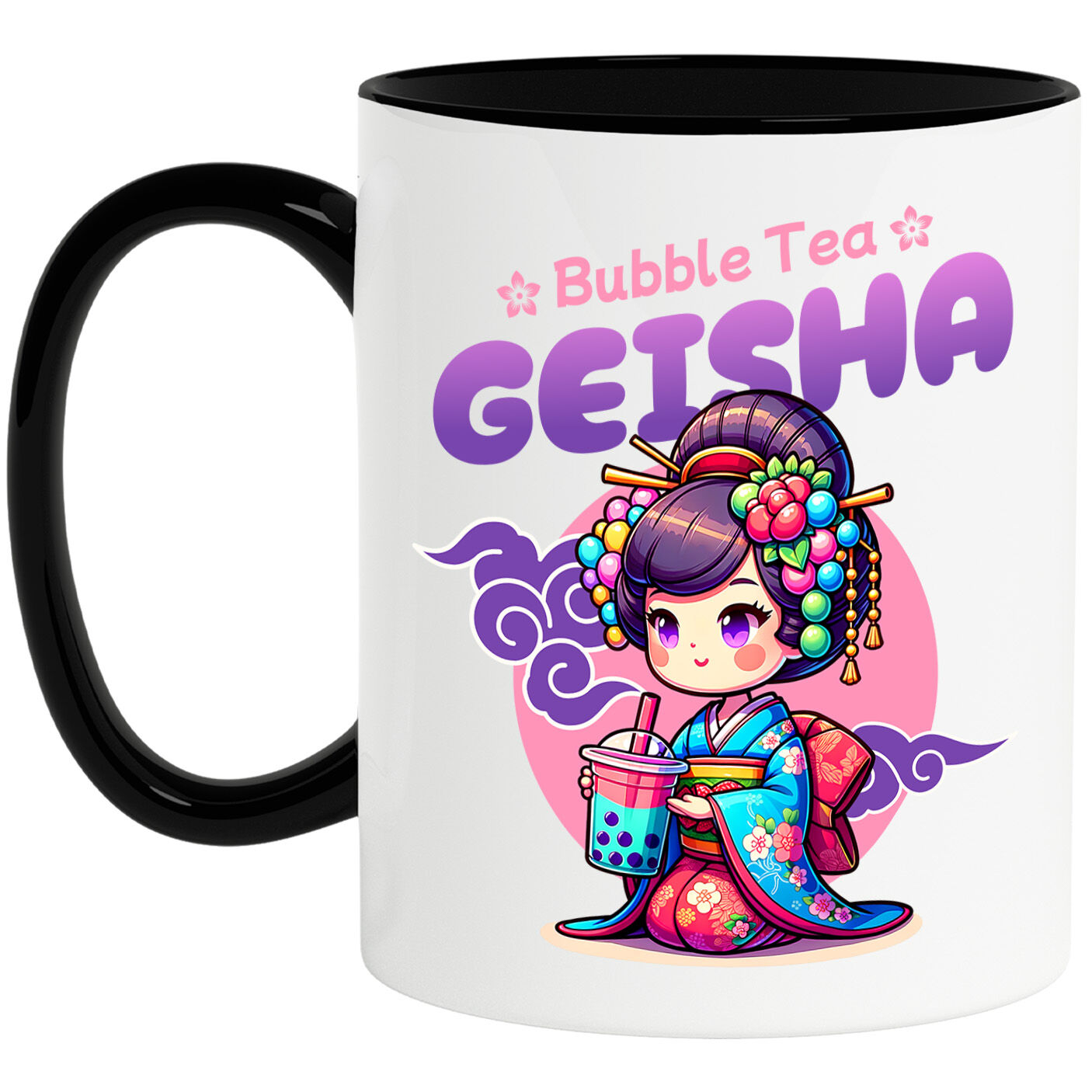 Cana Personalizata cu Fata Stil asiatic Cu Ceai Rece Cu Bule Bautura Accesori Asiatice, Bautura racoritoare, Ceramica, 330ML, cu Maner Negru
