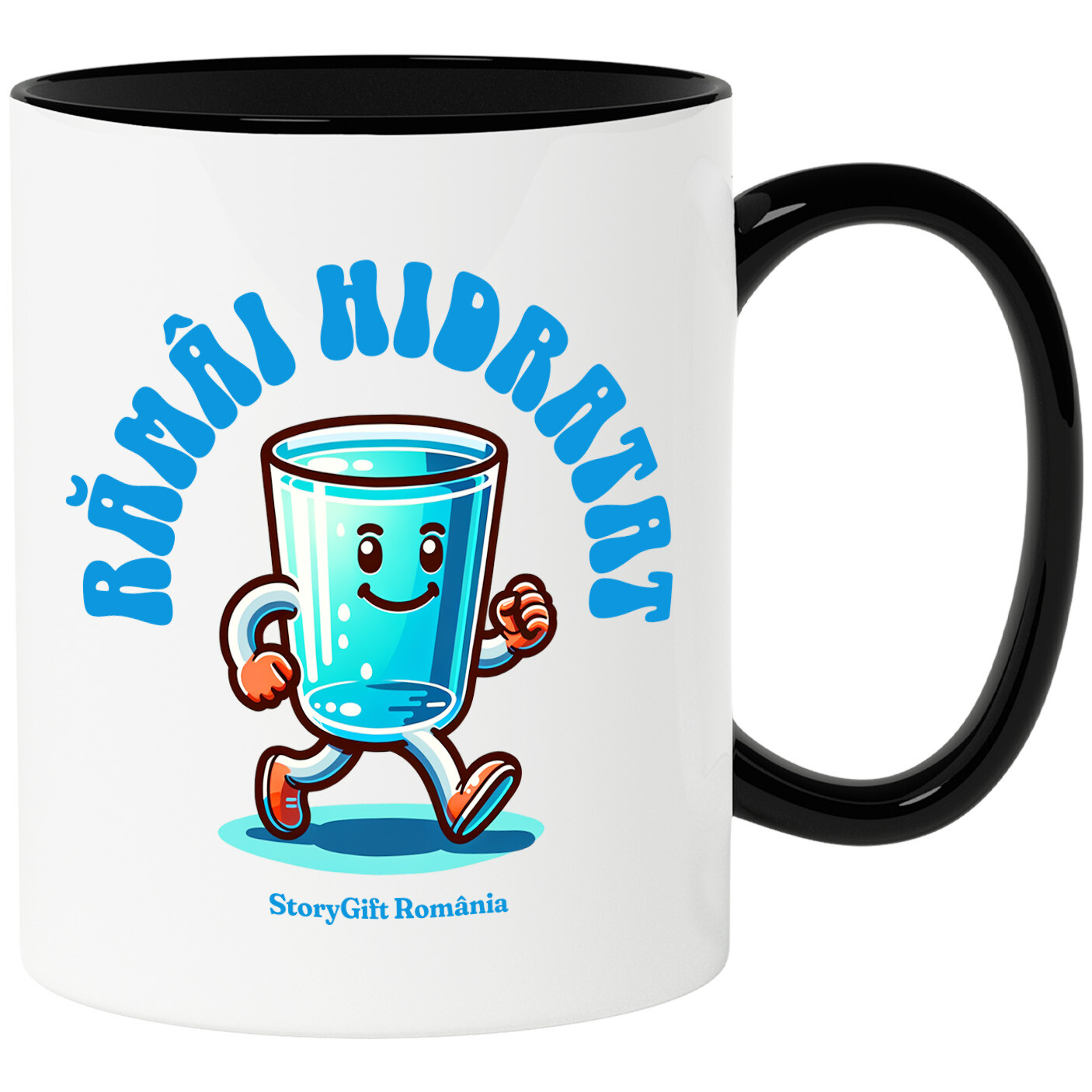 Cana Personalizata cu Pahar De apa Vesel Mergand, Hidratare Bea Apa, Natura, Sanatate, Sport, Ceramica, 330ML, cu Maner Negru