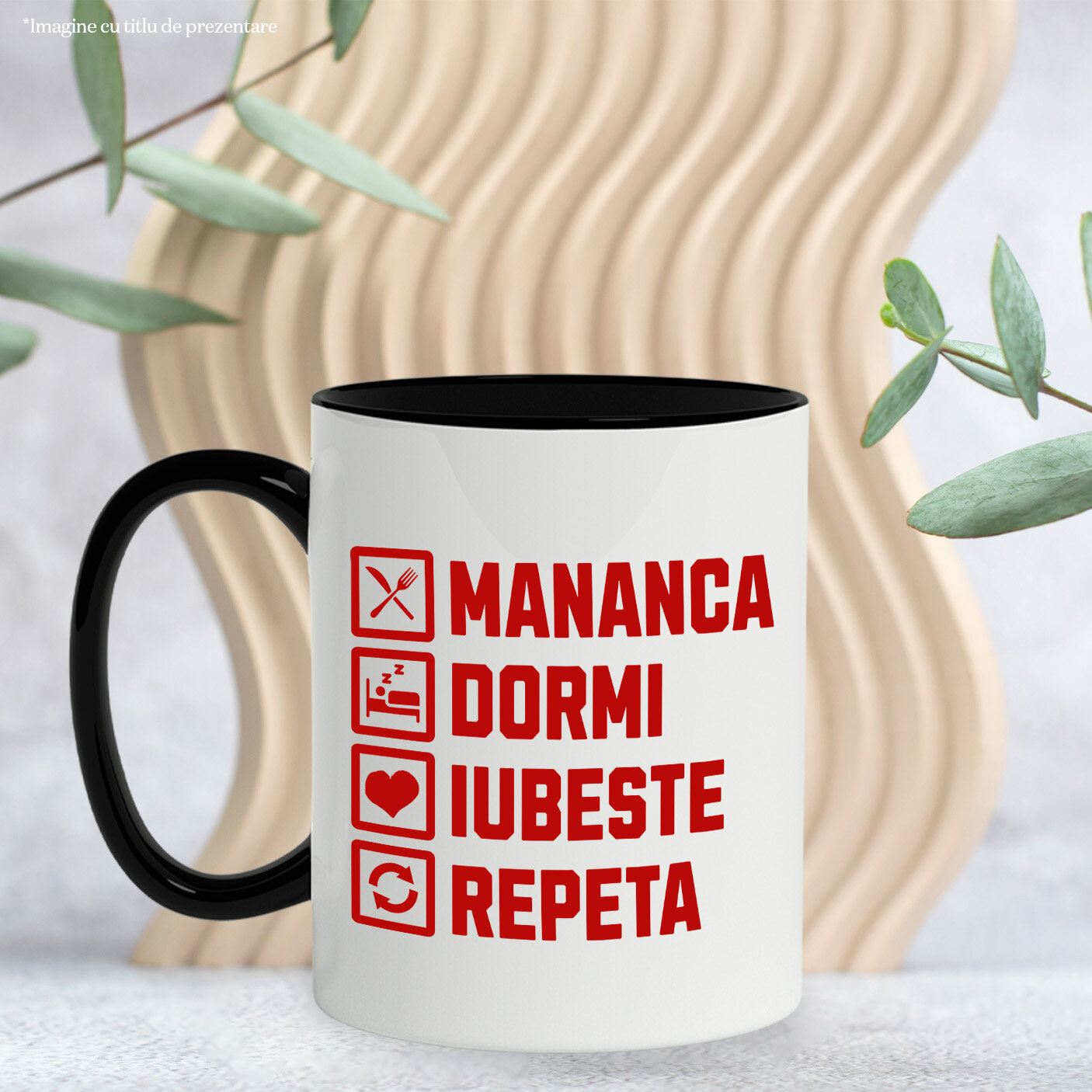 Cana Personalizata cu Rutina Zilnica Schedule, valentine's Day, Dragoste, Dragobete, Ceramica, 330ML, cu Maner Negru