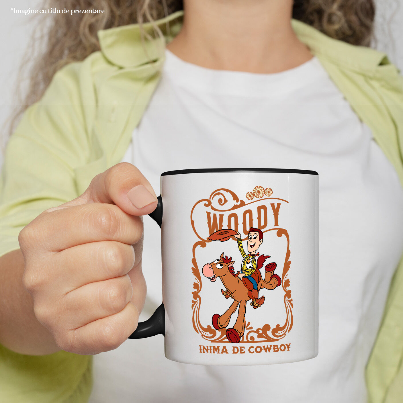 Cana Cu Woody si calul – curaj si incredere Ceramica, 330ML, cu Maner Negru