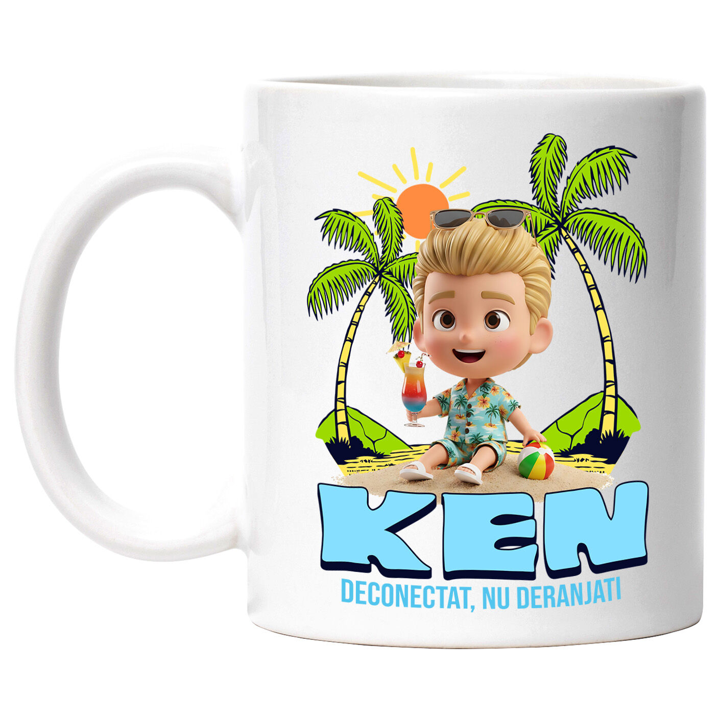 Cana Cu Aventuri la Mare cu Ken Ceramica, 330ML, cu Maner Alb