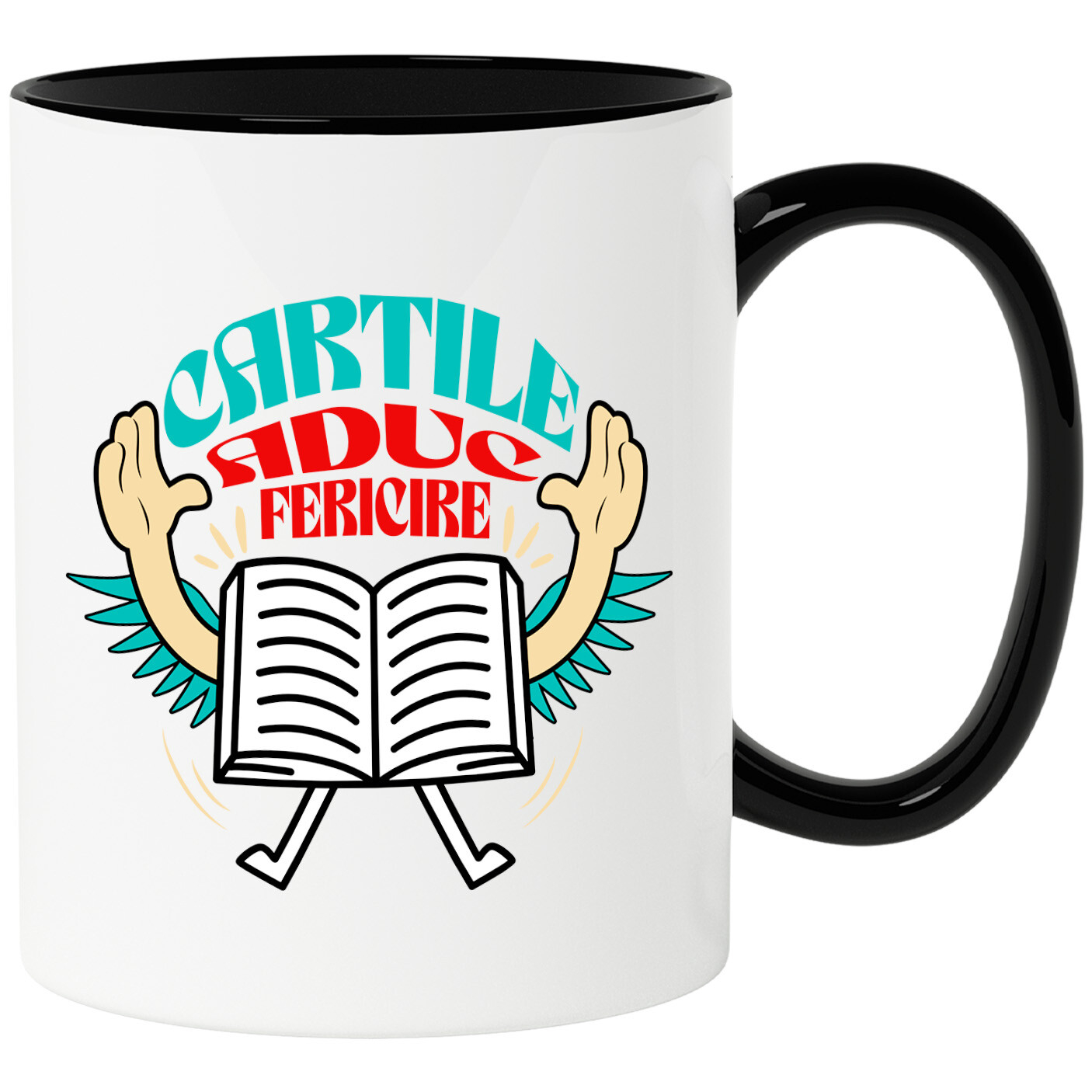 Cana Personalizata cu Carte Deschisa Cu Maini Umane Ridicate, Educatie, Scoala, Ceramica, 330ML, cu Maner Negru