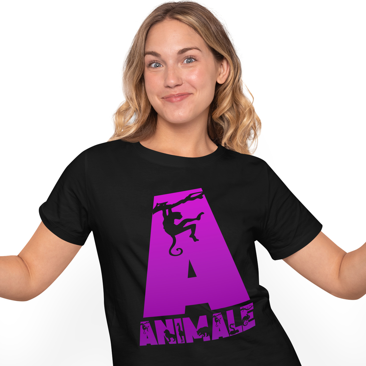 Tricou Personalizat Femei Pentru Iubitorii De Maimute, Jungla, Text Personalizat, Culoare Mov,Copii, Negru, 100% Bumbac, Marime XS
