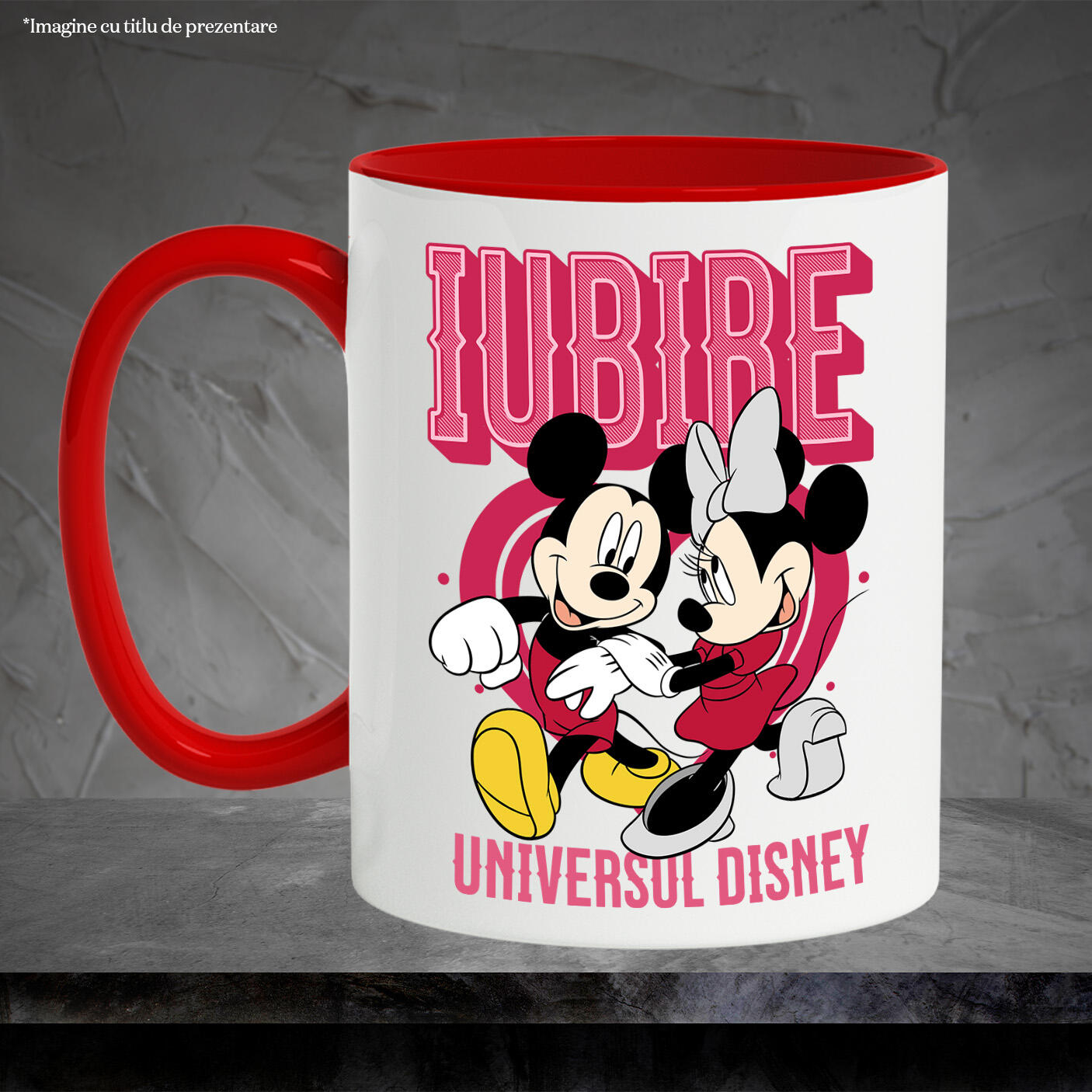 Cana Cu Inima Plina de Dragoste – Minnie siMickey Ceramica, 330ML, cu Maner Rosu