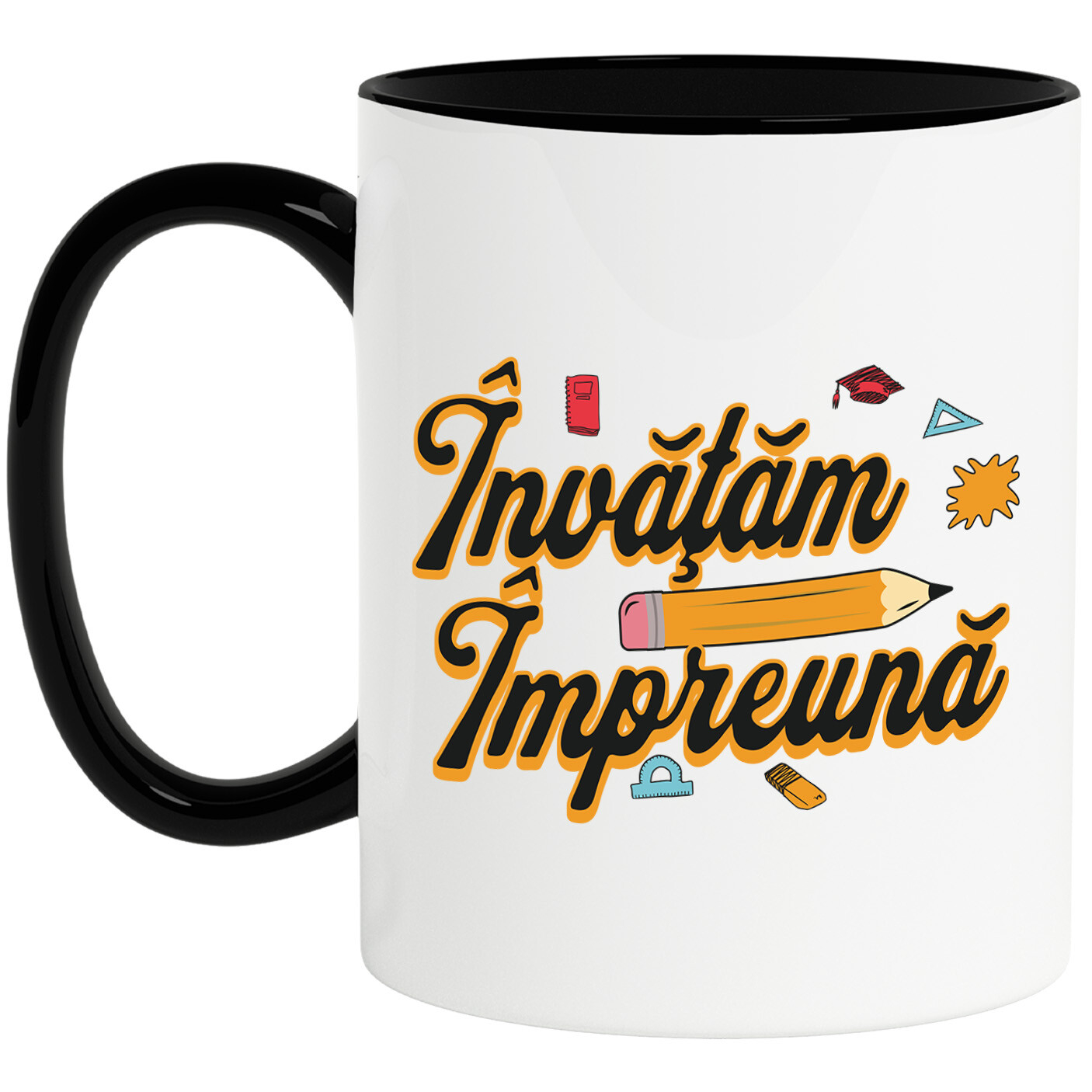 Cana Personalizata cu Rechizite scolare Copii Creion Imens Invatam Impreuna dezvoltare Personala, Ceramica, 330ML, cu Maner Negru