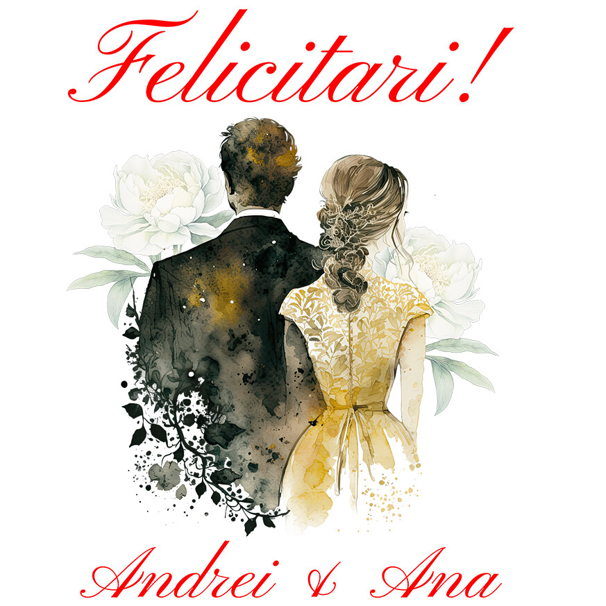 Sticker Personalizat cu Arta Stil Pictura Ziua Nuntii Cuplu Mire Si Mireasa, Petrecere Iubire cu Margini Albe, PVC Vinyl 10 cm