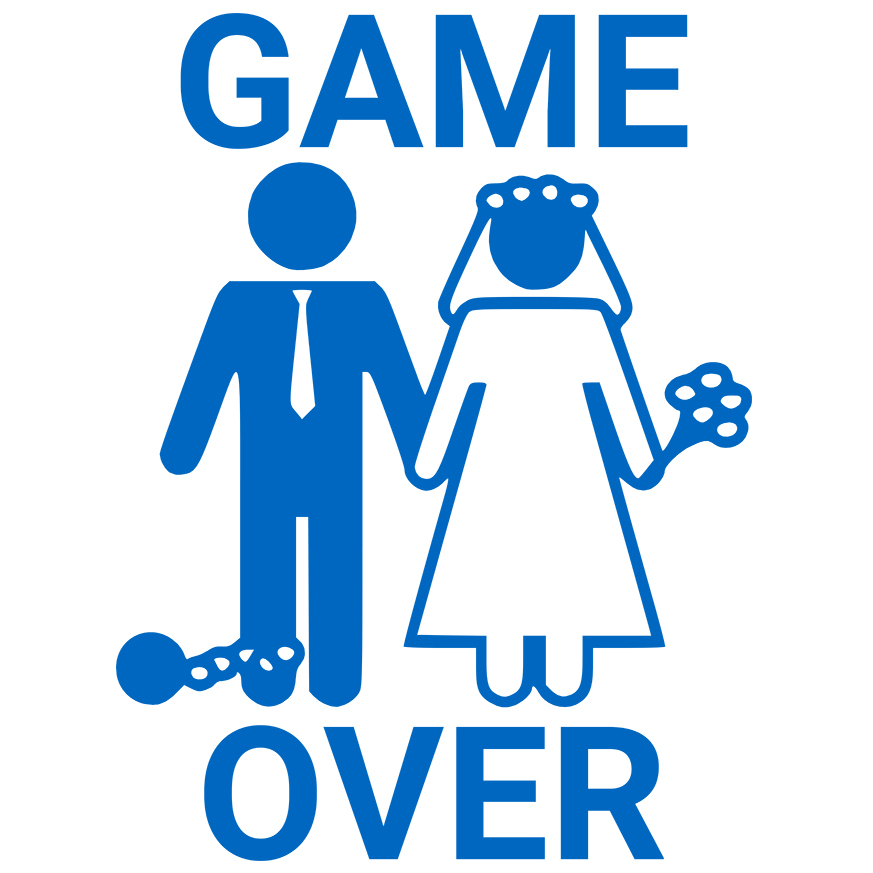 Sticker Personalizat cu Design Haios Ziua Nuntii Cuplu Portret Mire Si Mireasa, Barbat Cu Lant cu Margini Albe, PVC Vinyl 10 cm