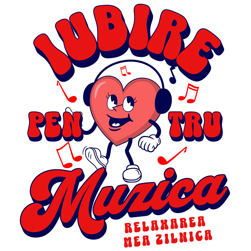 Sticker Personalizat cu Inima Vesela Cu Casti Audio Dragoste Muzica cu Margini Albe, PVC Vinyl 10 cm