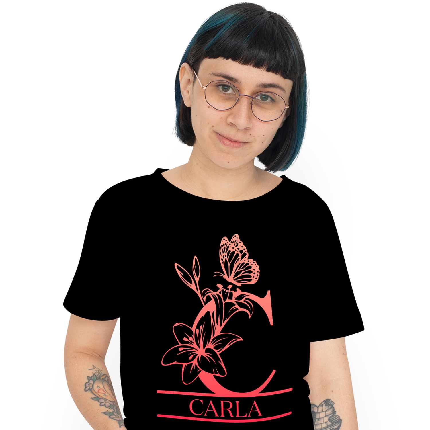 Tricou Personalizat Femei Pentru Iubitorii De Crini, Flori,Fluture Natura, Text Nume Personalizat, Dragoste, Culoare Rosu, Negru, 100% Bumbac, Marime XS