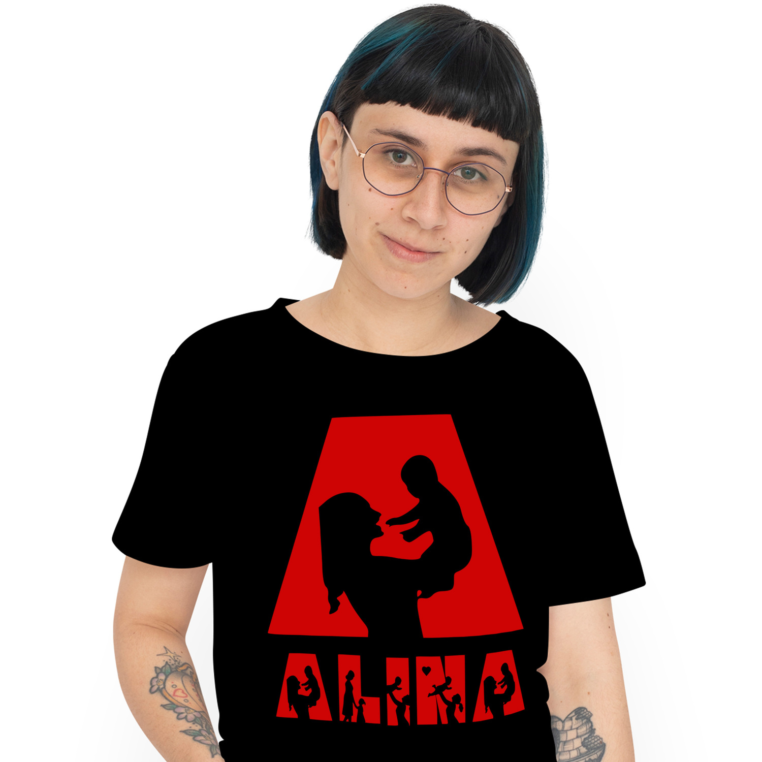 Tricou Personalizat Femei Pentru Iubitorii De Familie, Mama, Parinte, Text Nume Personalizat, copii, Culoare Rosu, Negru, 100% Bumbac, Marime XS