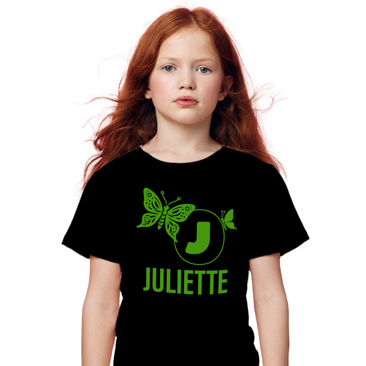 Tricou Personalizat Copii Pentru Iubitorii De Fluturi, Fiinta Zburatoare, Text Nume Personalizat, Culoare Verde, Negru, 100% Bumbac, Marime 6 Ani