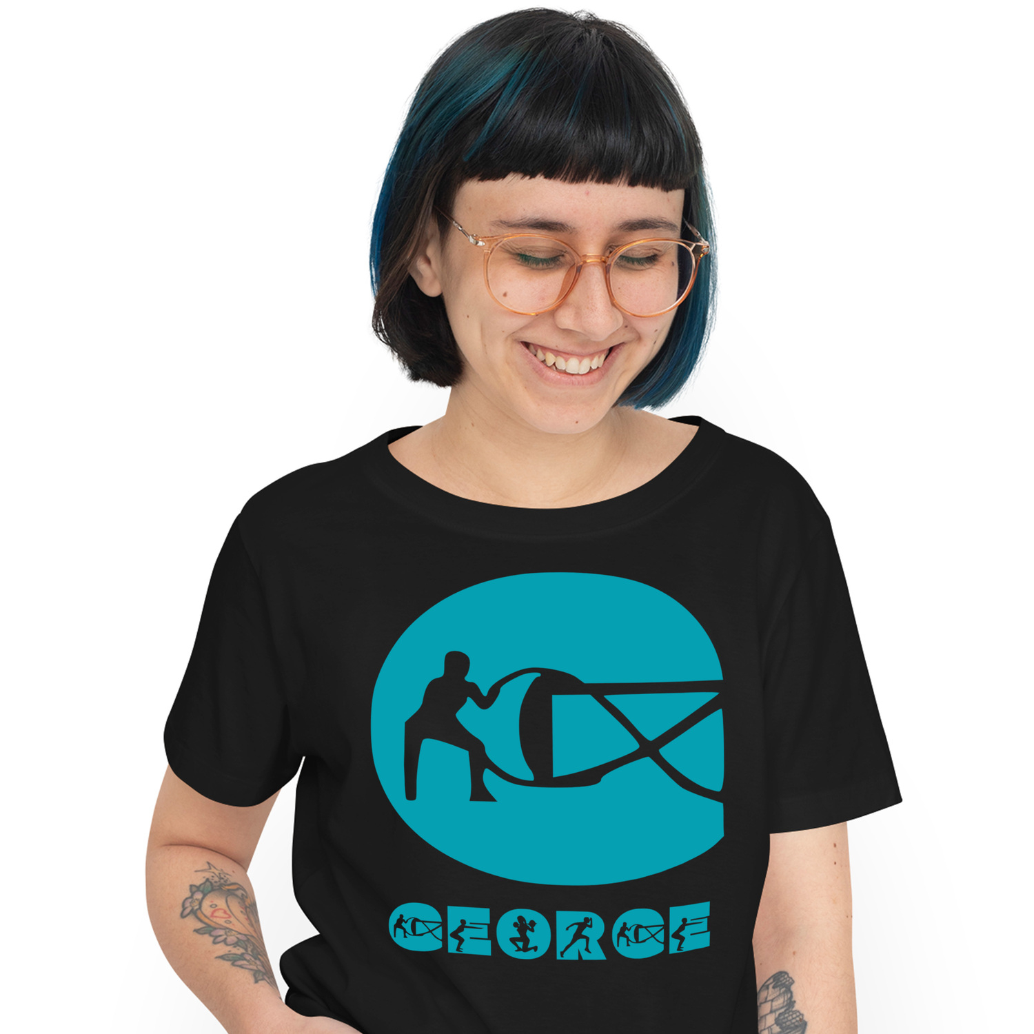 Tricou Personalizat Femei Pentru Iubitorii De Sport, Siluete Umane, Sala Fitness, Text Nume Personalizat, Culoare Albastru, Negru, 100% Bumbac, Marime XS