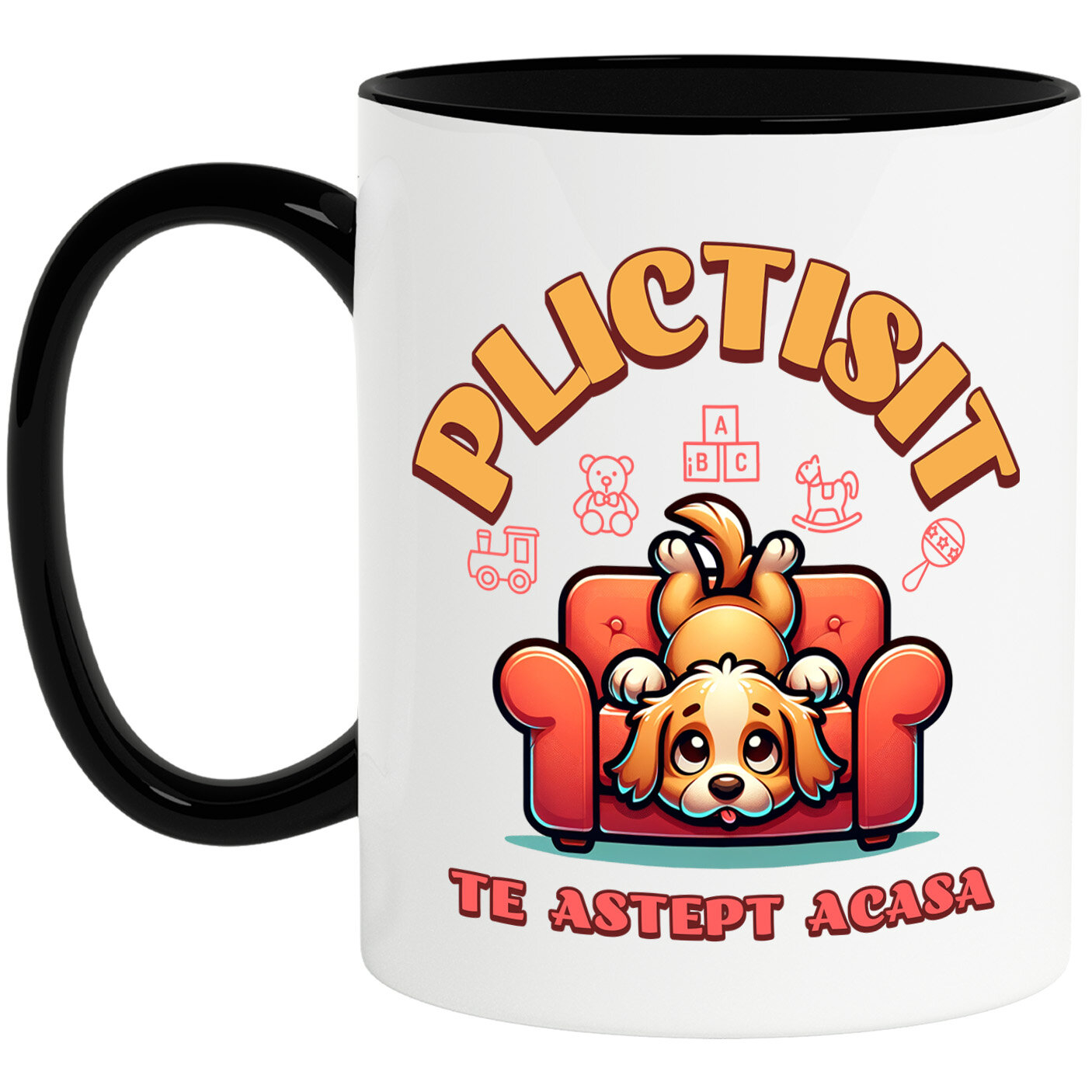 Cana Personalizata cu Caine Plictisit Pe Cana Personalizatapea Asteapta Stapanul acasa, animal Blanos, Ceramica, 330ML, cu Maner Negru
