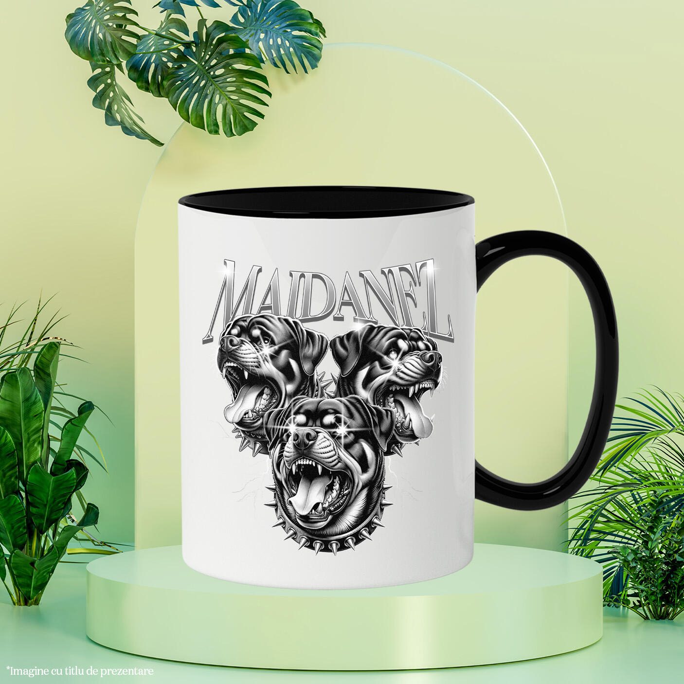 Cana Personalizata cu Caini Furiosi Cu Colti Si Ochii Stralucitori, Animal Periculos, Ceramica, 330ML, cu Maner Negru