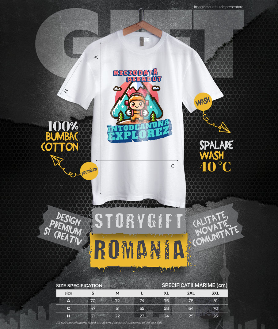 2. Alege pentru cine este tricoul – bărbat, femeie sau copil – și selectează mărimea potrivită pentru un fit perfect!