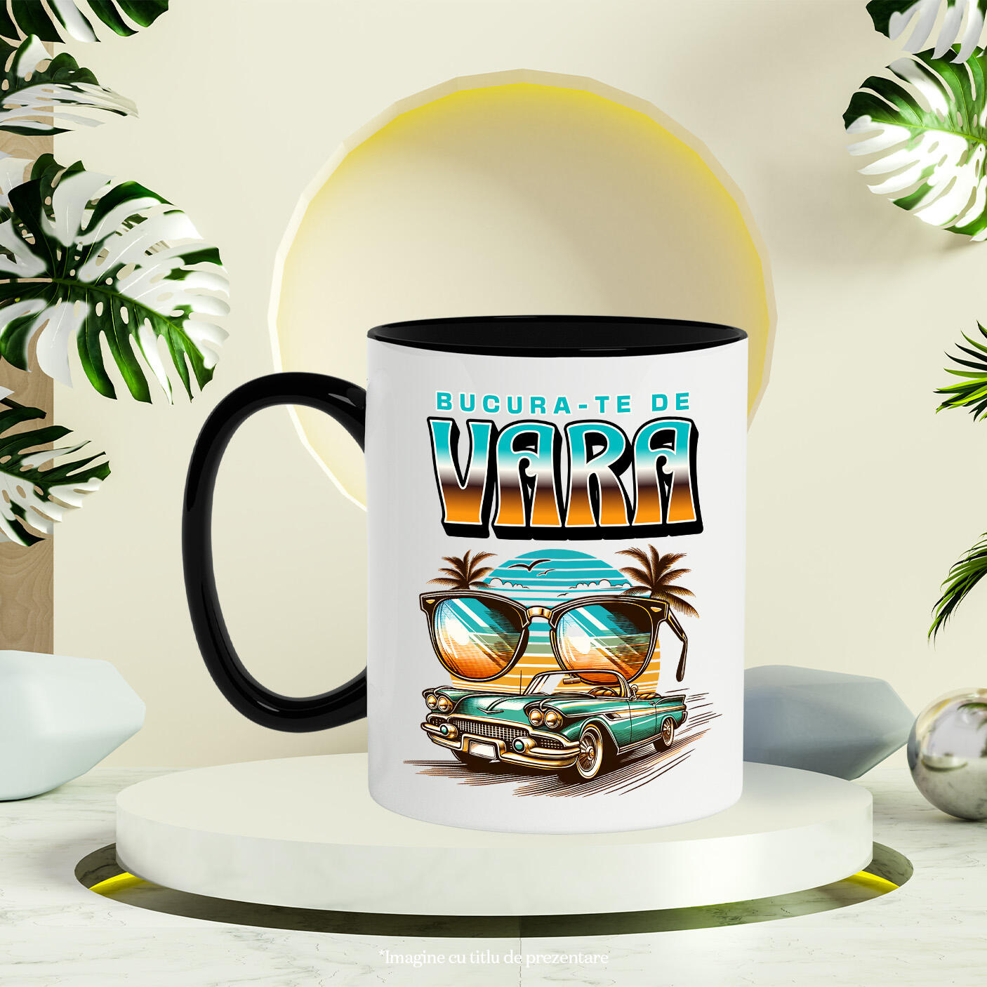 Cana Personalizata cu Masina Clasica vintige Albastra Ochelari De Soare Pomi Tropicali, Vacanta, vara, Ceramica, 330ML, cu Maner Negru