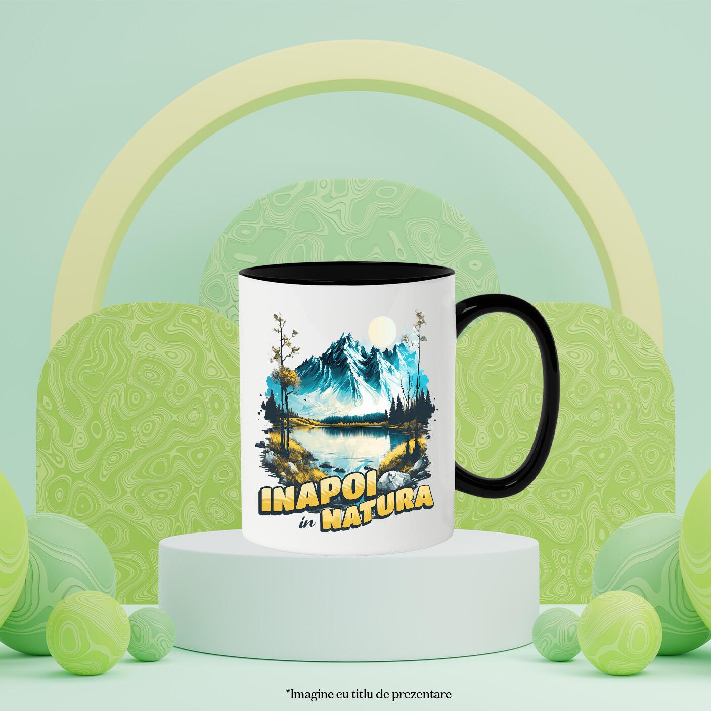 Cana Personalizata cu Munte Inalt Luna Plina Lac Stralucitor, Natura, Aventura, Hobby, Ceramica, 330ML, cu Maner Negru