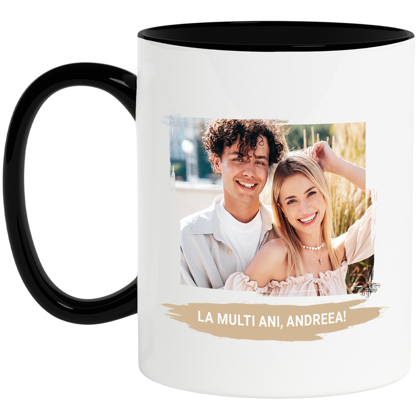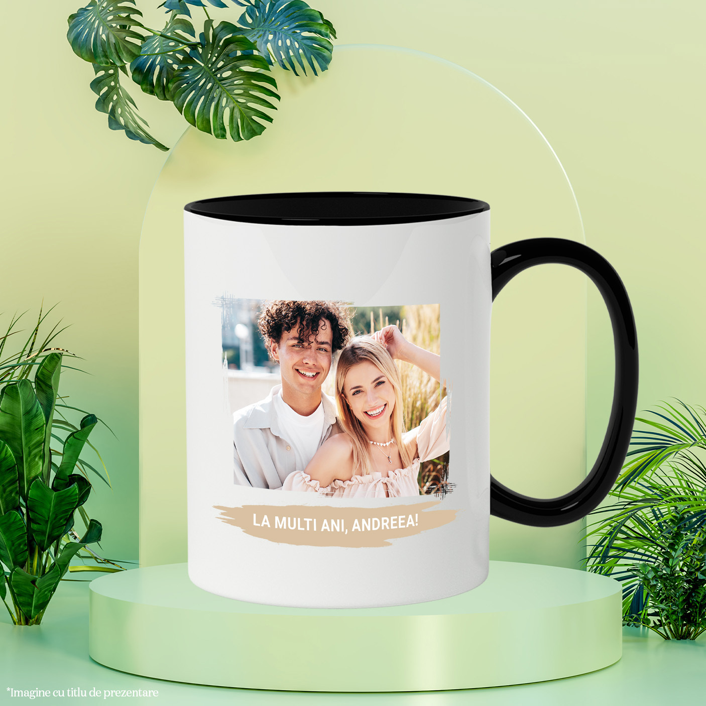 Cana Imagine Personalizata cadru dreptunghi Valentine's Day, Cadou Special cu Maner si Interior Negru