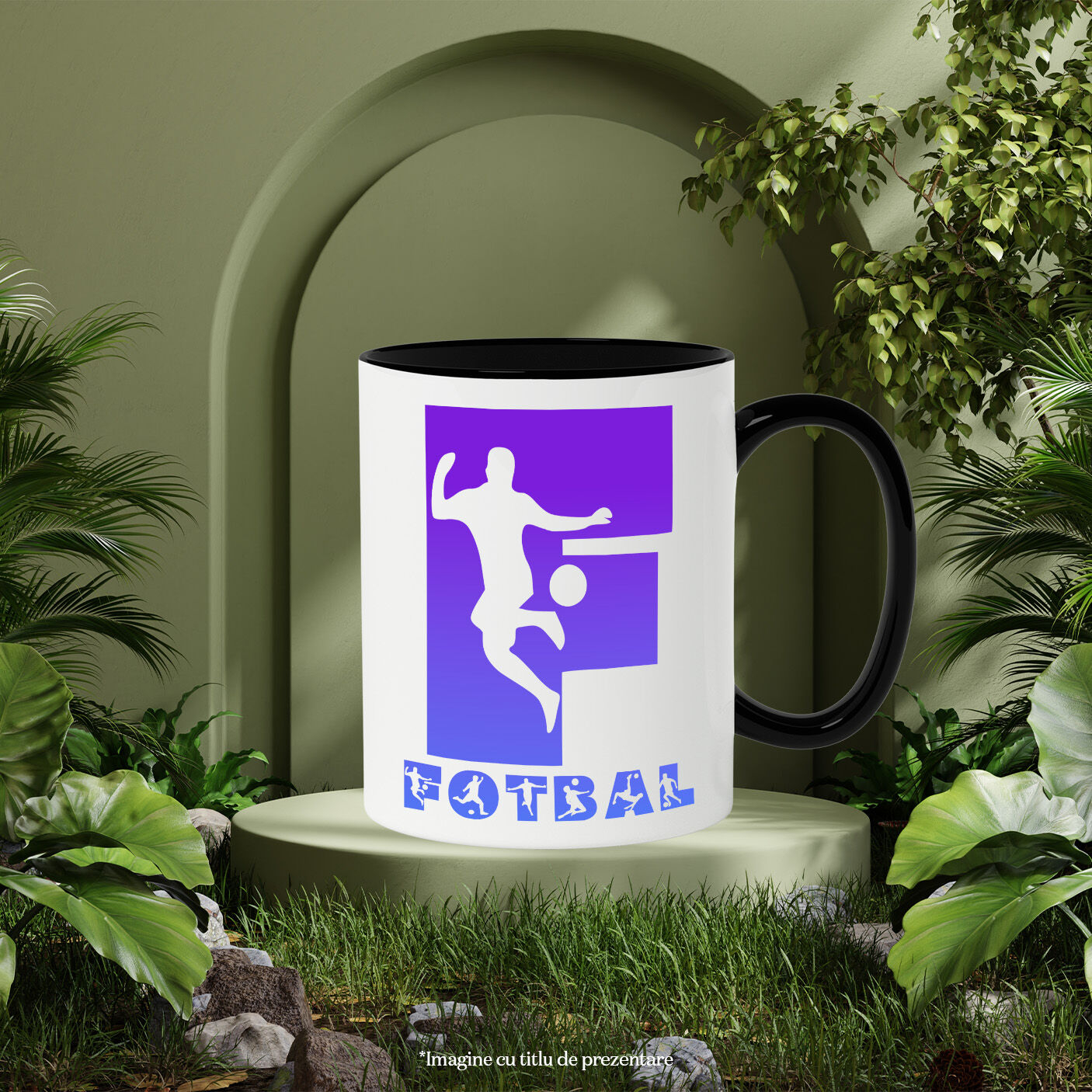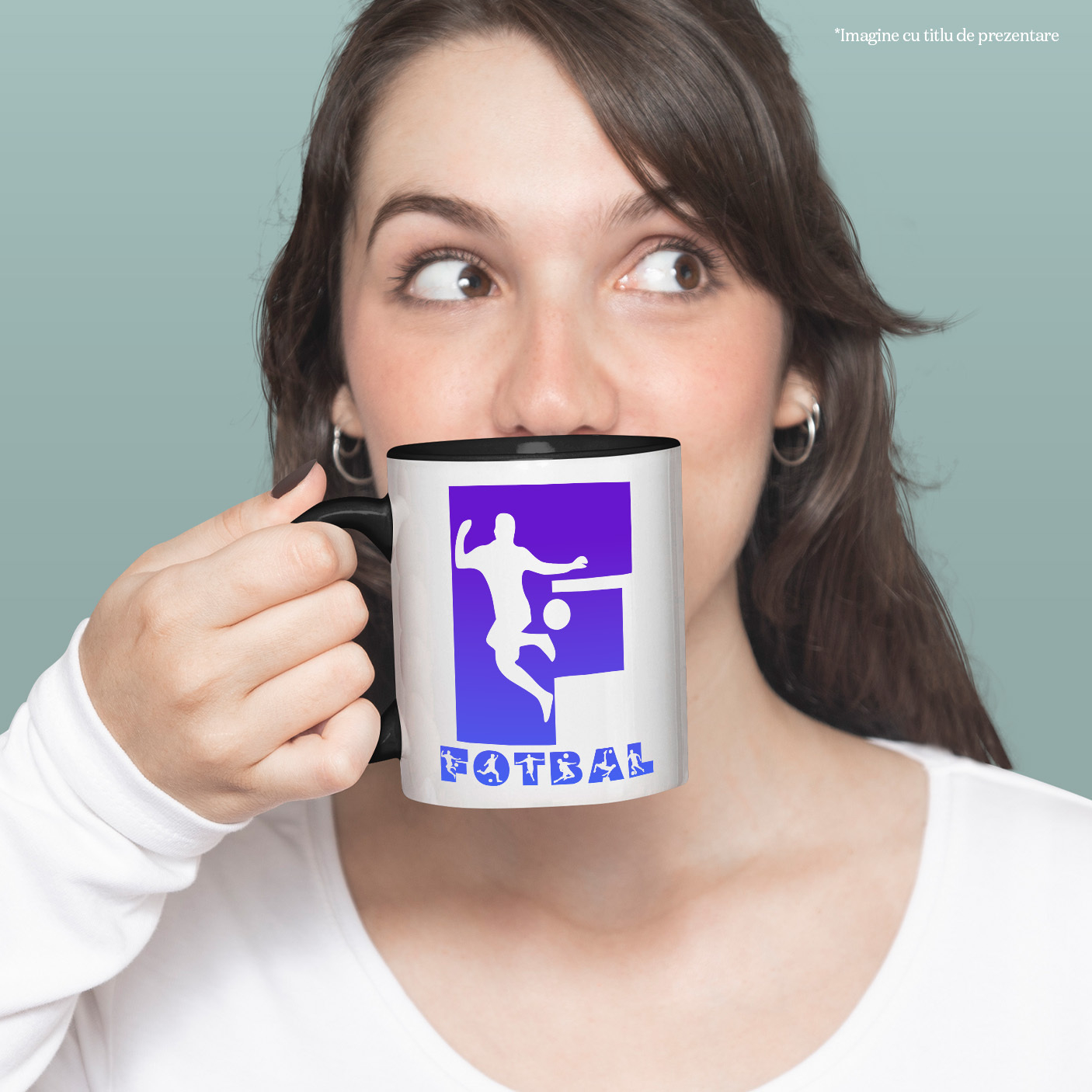 Cana Iubitorii De Fotbal, Minge, Silueta Sportiv, Text Nume Personalizat, Copii, Culoare Albastru, Cu Litera, 330ML, Ceramica, Cu Maner si Interior Negru