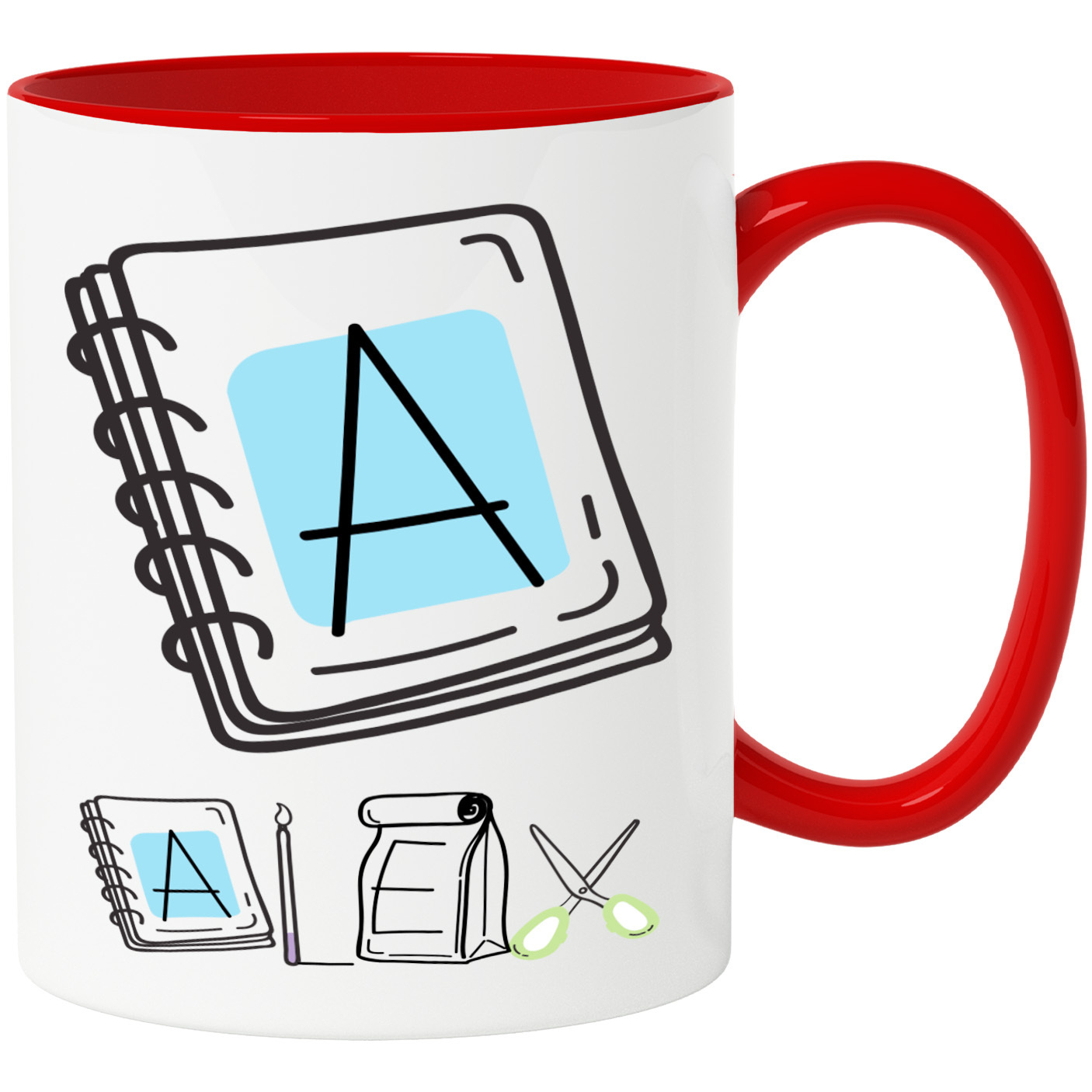 Cana Iubitorii De Scoala, Pachet Mancare, Text Nume Personalizat, Copii, Culoare Negru, Cu Litera, 330ML, Ceramica, Cu Maner si Interior Rosu