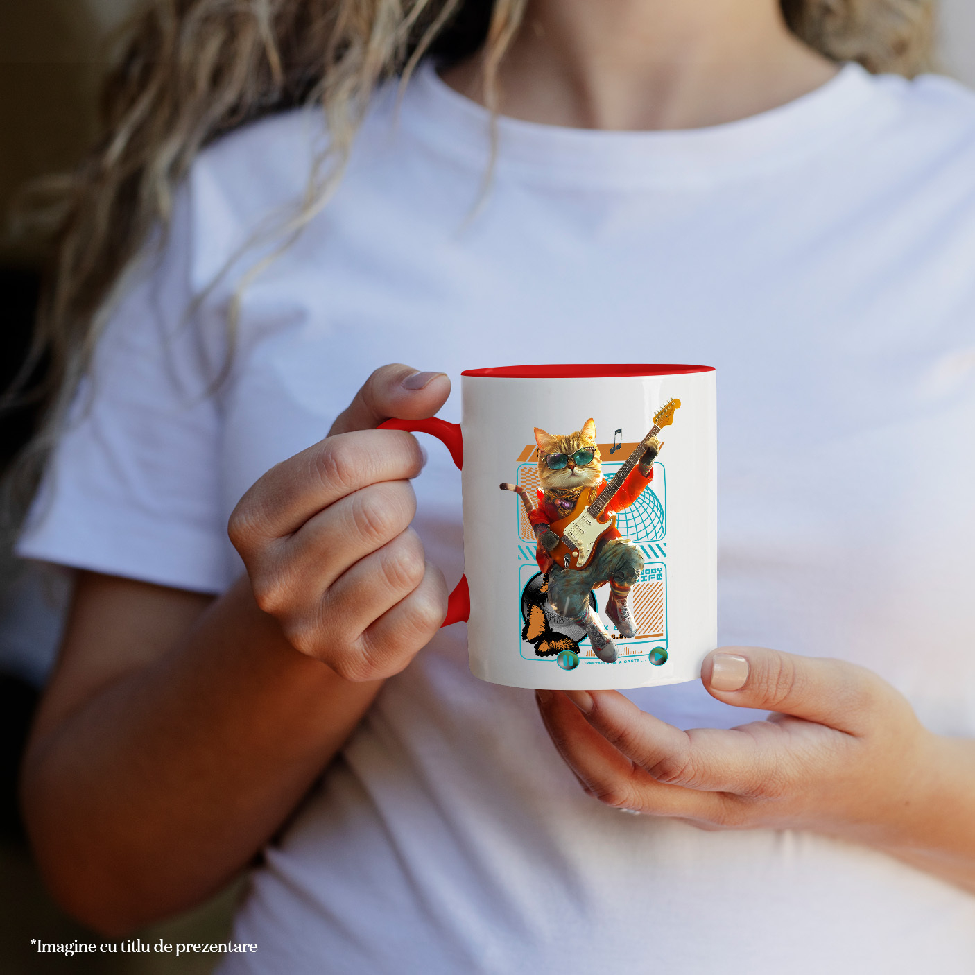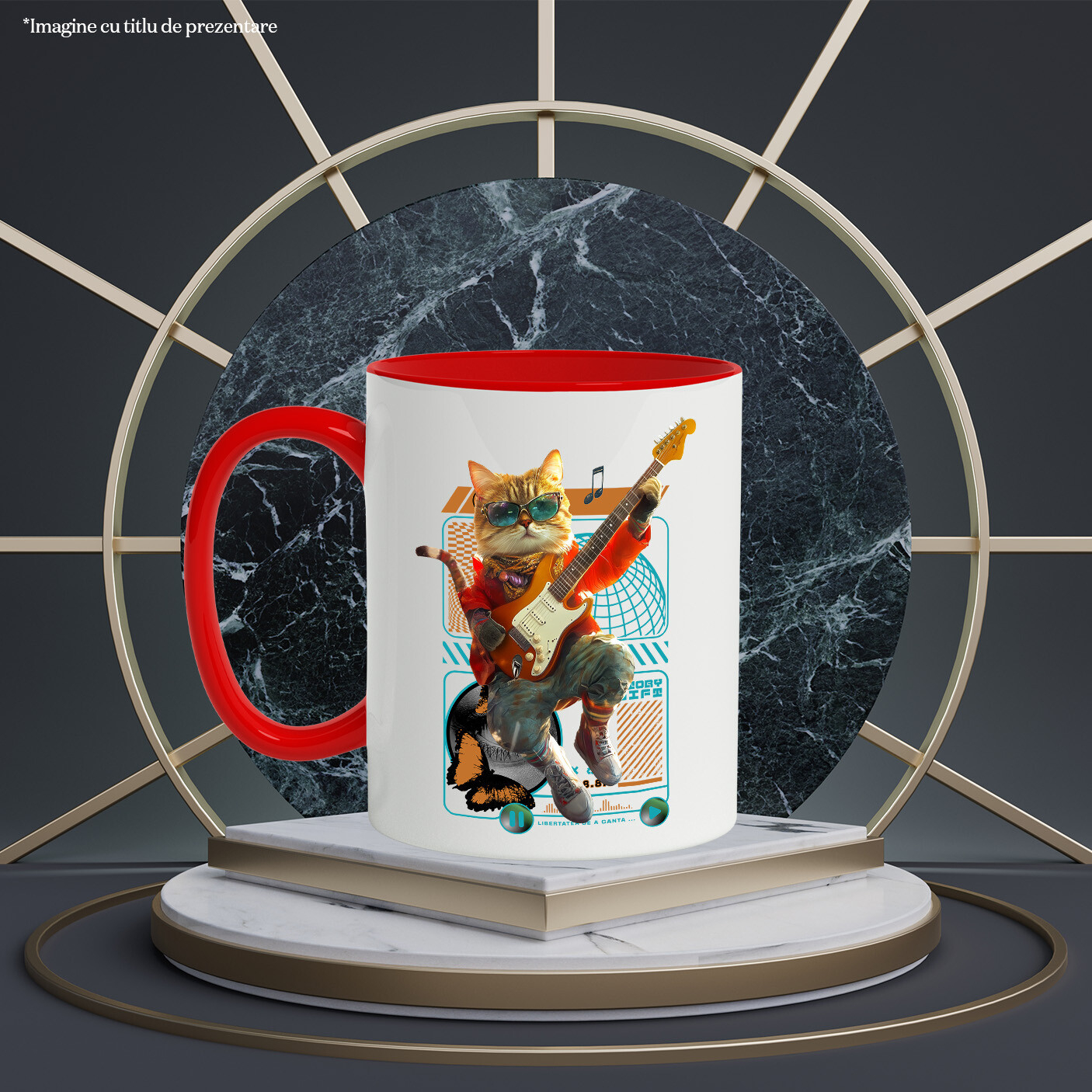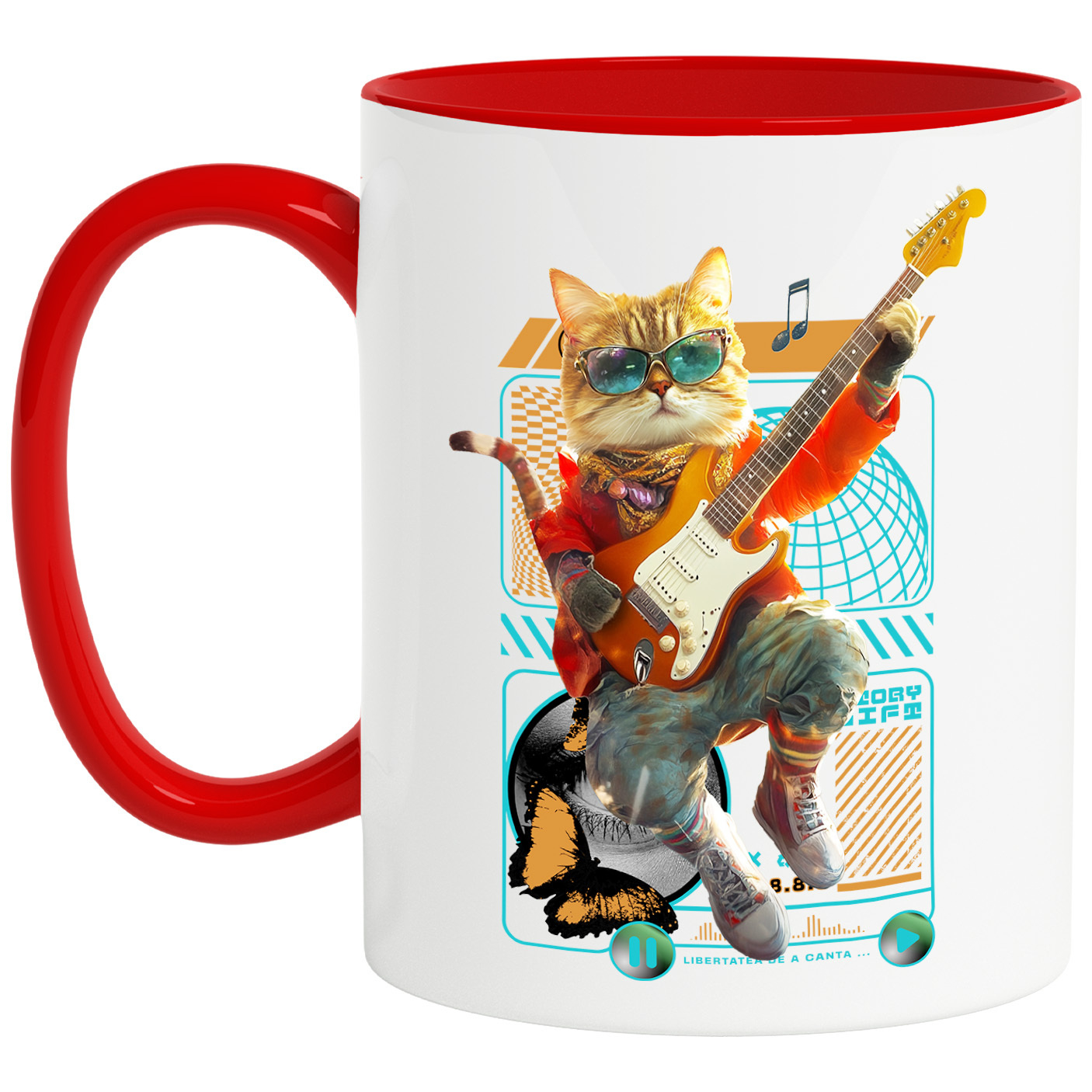 Cana cu Animal Cantand la Chitara, Peronalizata cu Numele si Poza Animalului Tau cu Maner Rosu